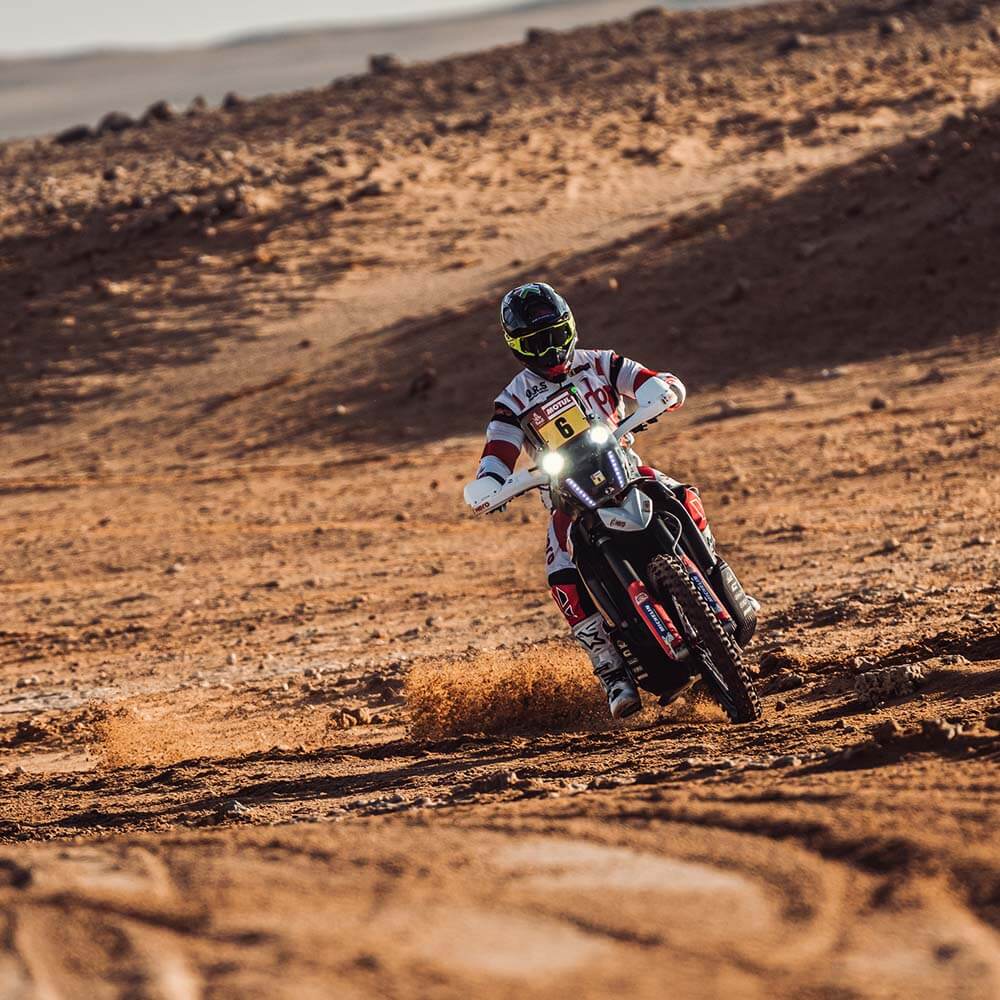 After the stage, JRod said, “Today was a really tough day for me. I suffered a big crash in the first part and hurt my back. I was struggling to keep moving, and then I crashed again. I’m in a bit of pain, but it’s the Dakar – I’m going to recover tonight and prepare to ride again tomorrow. We still finished the stage well, I’m happy about that.”