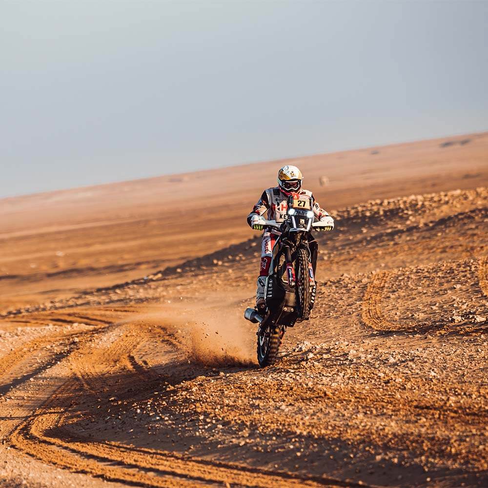 Aaron said, “I felt a lot more comfortable on the bike today. We made a few changes in the suspension yesterday, and it definitely helped me. I was riding well till about 75kms, where I ended up making a small navigation error. I then focused on getting to the finish without making any further mistakes, and made some time in the last 40kms of dunes. I’m happy that the bike and I are back in one piece, with a decent result as well.”