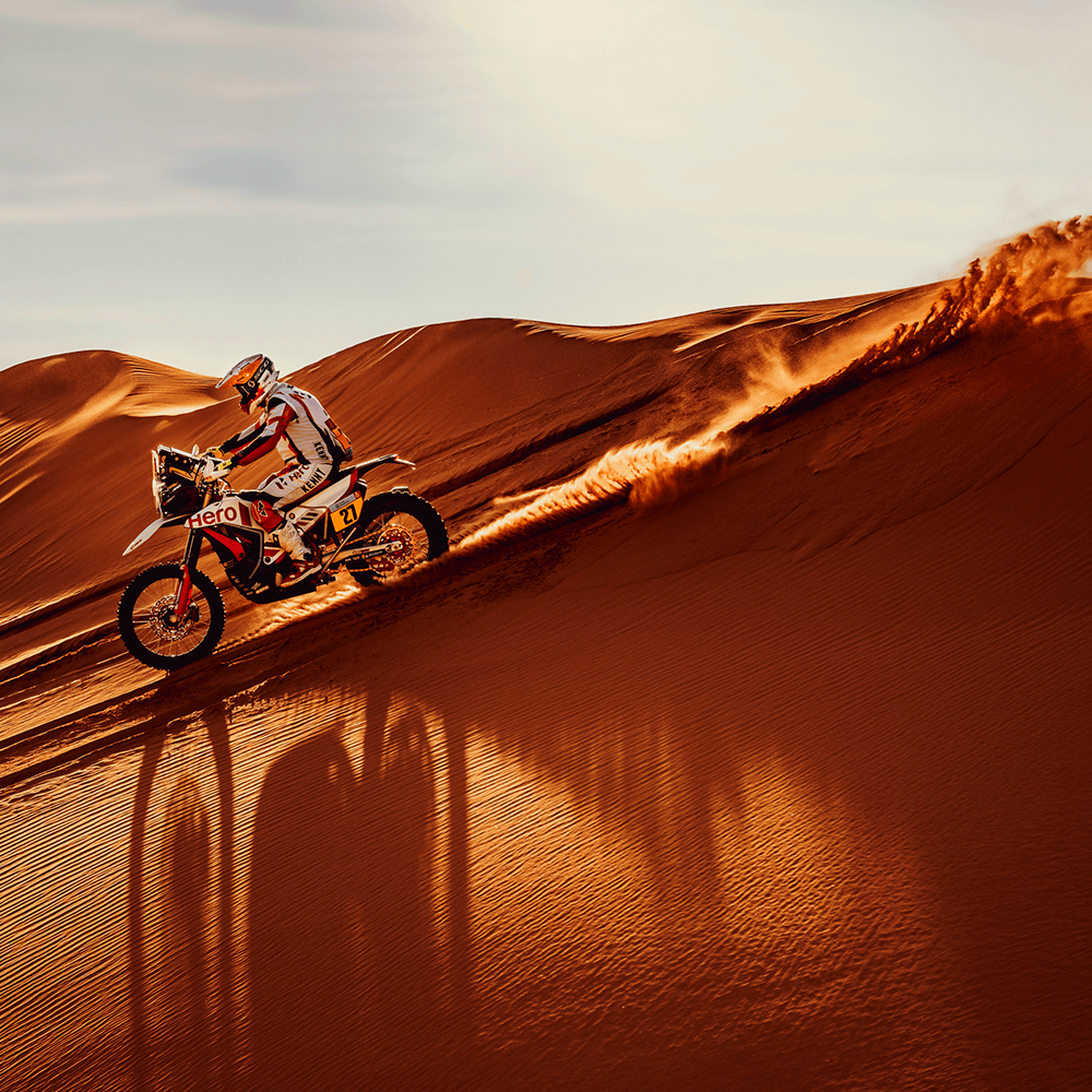 Aaron said, “I started the stage pretty well, and was able to catch up to some of the riders before the refuel point. After refuelling, it was quite rocky and dusty, and it became quite difficult to manage the navigation. I was leading the stage quite a few times for a pack of 4-5 riders, but it meant that every time I would make a small mistake, I would have to go back into the dust again. Finally, I found some rhythm and was pacing ahead up until around 300kms or so, where I lost quite some time searching for a particular waypoint. It was a disappointing end, but I’m learning from my mistakes, and looking forward to making up for the lost time in the next stage.”