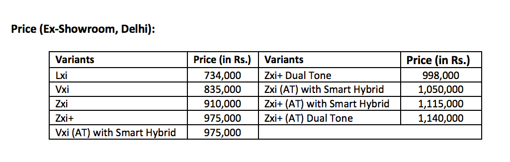 Vitara Brezza petrol price list