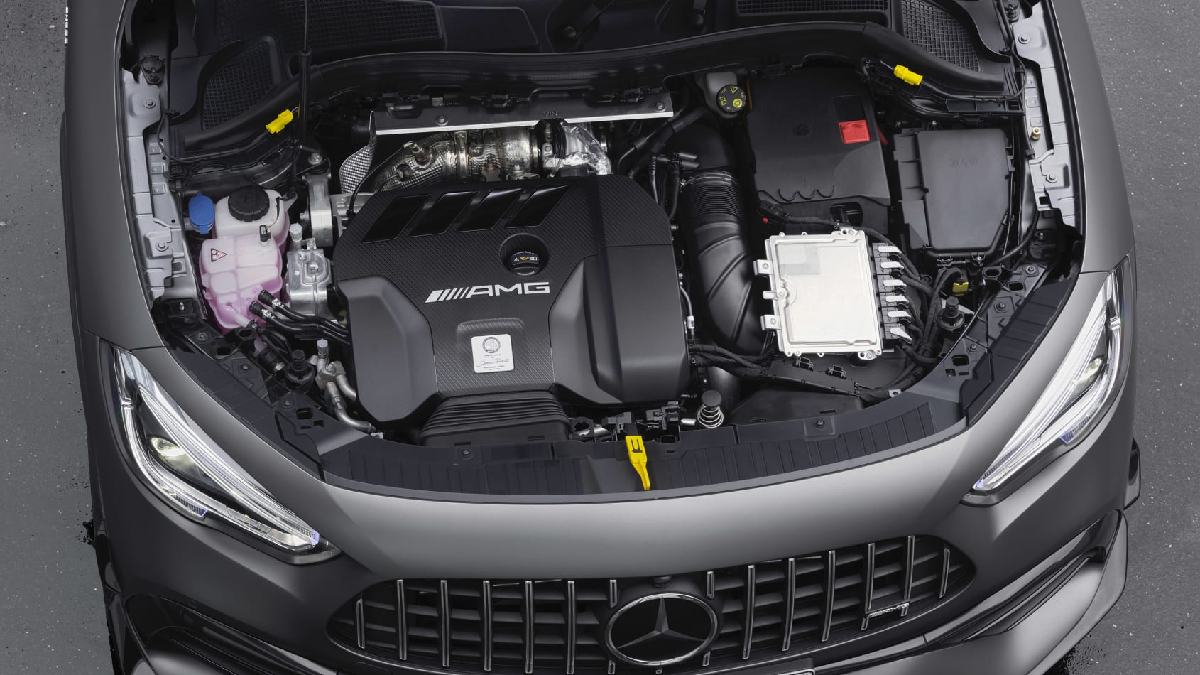Powered by the same 2-litre turbocharged four-cylinder as in the current A45, the standard GLA45 produces 381bhp and 475 Nm of torque, with the GLA45 S boasting 415bhp at 6750rpm, and 500 Nm of torque – that’s 21bhp more than the Audi, matching the output of the A45 hatch.