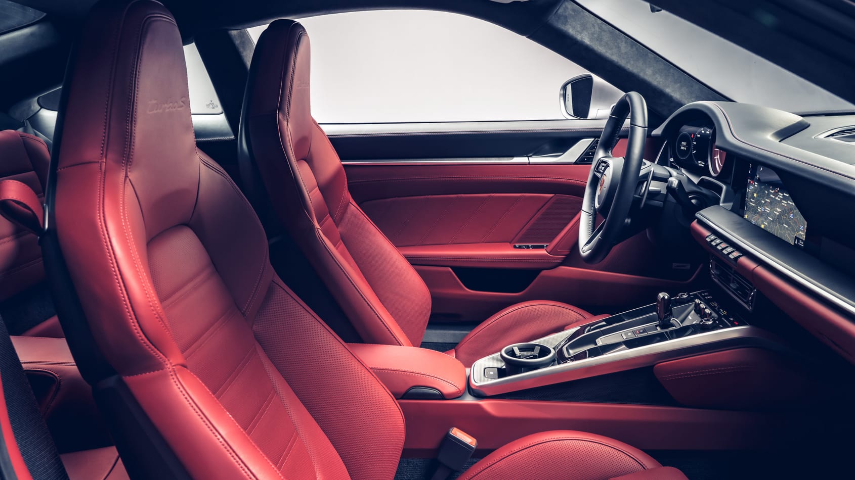 The electrically adjustable leather seats pays homage to the original 930 Turbo.