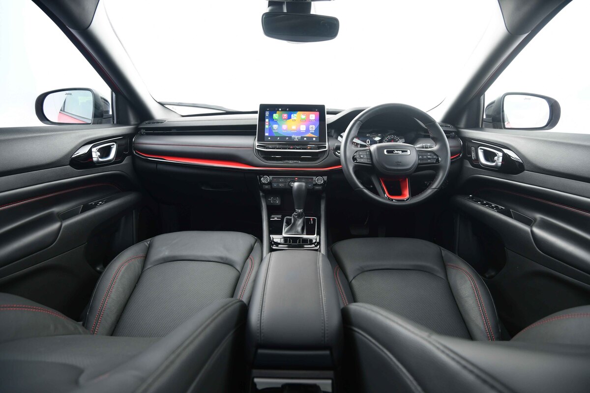 The exterior hasn’t had much change, save for the redesigned front grille and the 18-inch alloy wheels. The door sill has also been updated. Available exterior colours include white, black, green, red, blue and two varying shades of grey. Wireless charging and the sunroof are more accessible in the 2024 Compass as they are now available in middle trims as well.