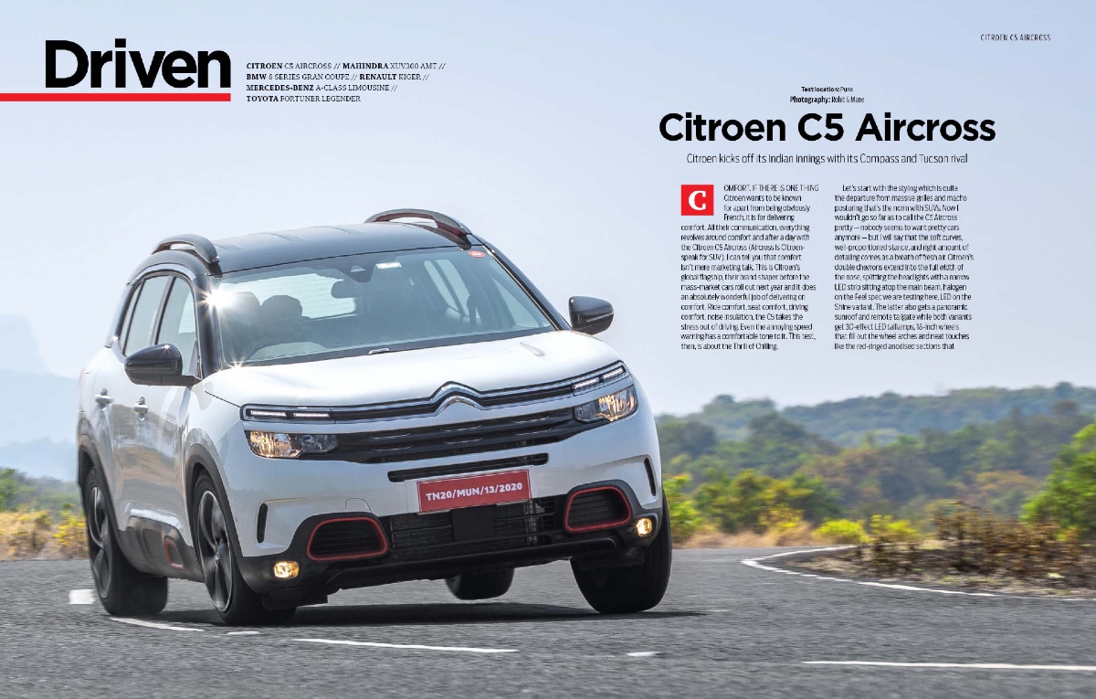 Not as fast but equally important is our first drive of the Citroen C5 Aircross, the debutant for Citroen in India, and it has its priorities set toward comfort.