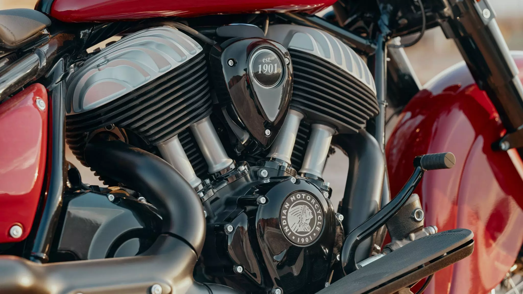 The looks of the Chief Vintage motorcycle hark back to the 1940s, referencing styling elements from the original Chief. Its most striking retro elements are the valanced or flared front and rear fenders which cover a quarter of the 16-inch wire-spoke wheels, and the illuminated Indian ‘Headdress’ ornament on the front fender. Additionally, there’s a vintage-inspired floating solo saddle or seat as standard, but customers can option a matching pillion seat with a backrest. It also has some snazzy looking handlebars which are a clear nod to its ancestor’s twisted aesthetic. The rear sub-frame is now sleeker against the Dark Horse’s broader shape, and this motorcycle is available in two colours — Indian Motorcycle Red and Black Metallic.