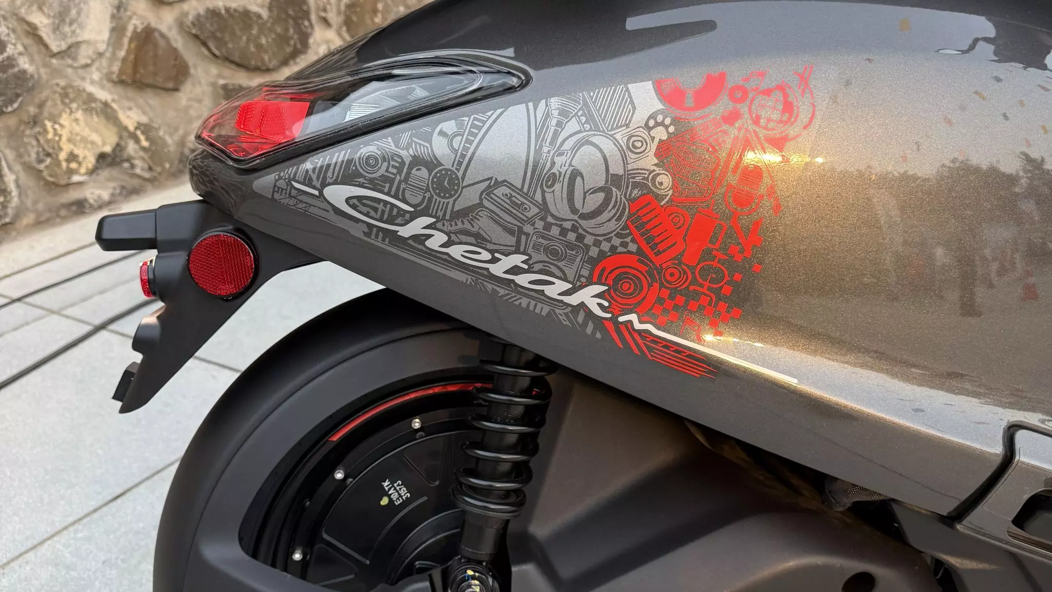 As for features, it has IP67 water and dust protection and is also equipped with a sheet metal underbody panel for the battery. Upfront, it has a coloured LCD display which can also manage calls and music, which can be controlled from the switchgear plateau that gets gloss black surrounds. The seat cushion is 650mm and hides a 25-litre underseat storage space. It weighs 107kg, making it 22kg lighter than the 35 series Chetak.