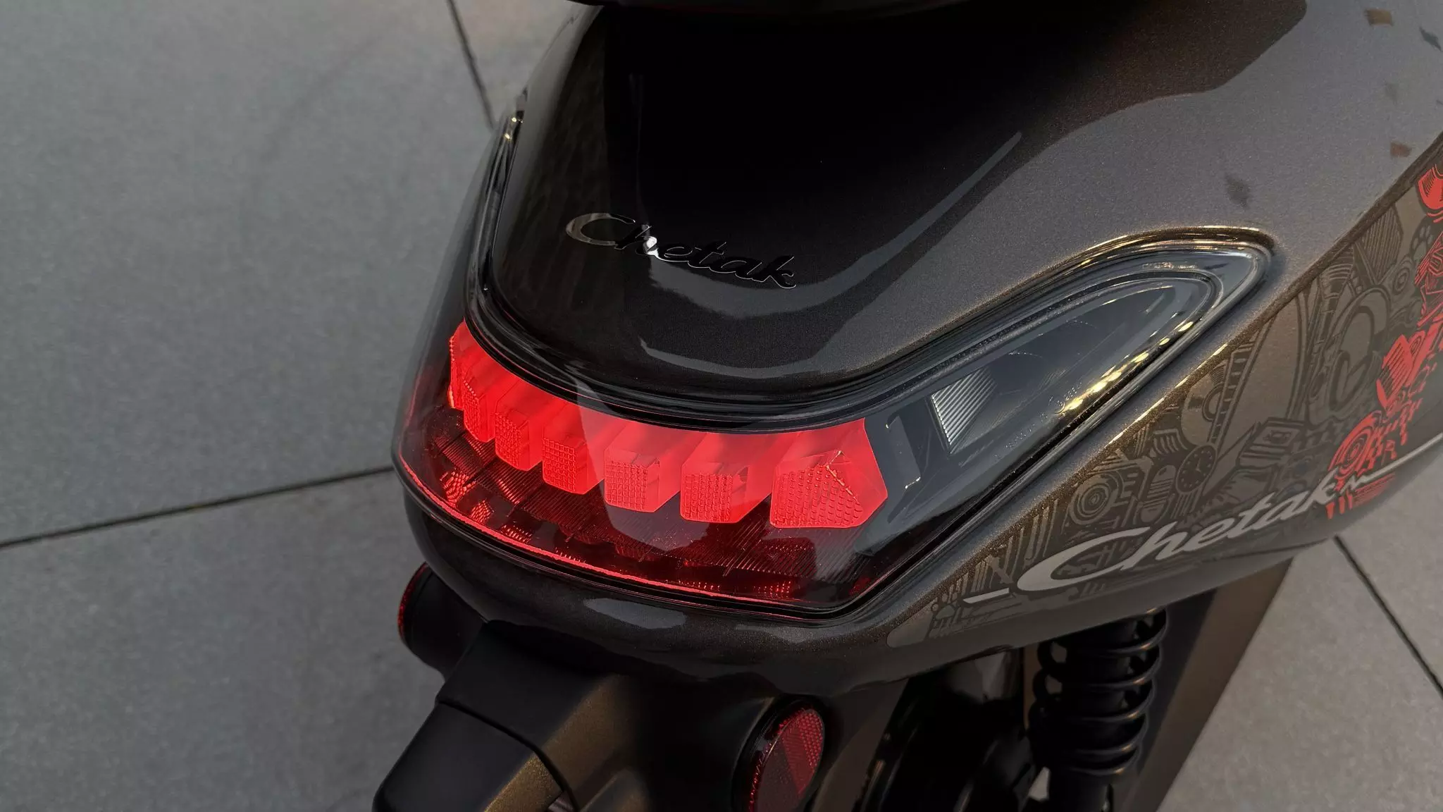 This latest and entry-level offering from Chetak Electric features their signature neo classical design. The hallmark style element being the LED headlight with a horseshoe-shaped DRL and integrated LED indicators. Its tail light introduces a clear lens design with ice cube-like LED inserts. There are six colours on offer – Mystic Yellow, Racing Red, Ocean Teal, Active Black, Opalescent Silver and Classic White. It also sports various body graphics, flanking the area below the seat.
