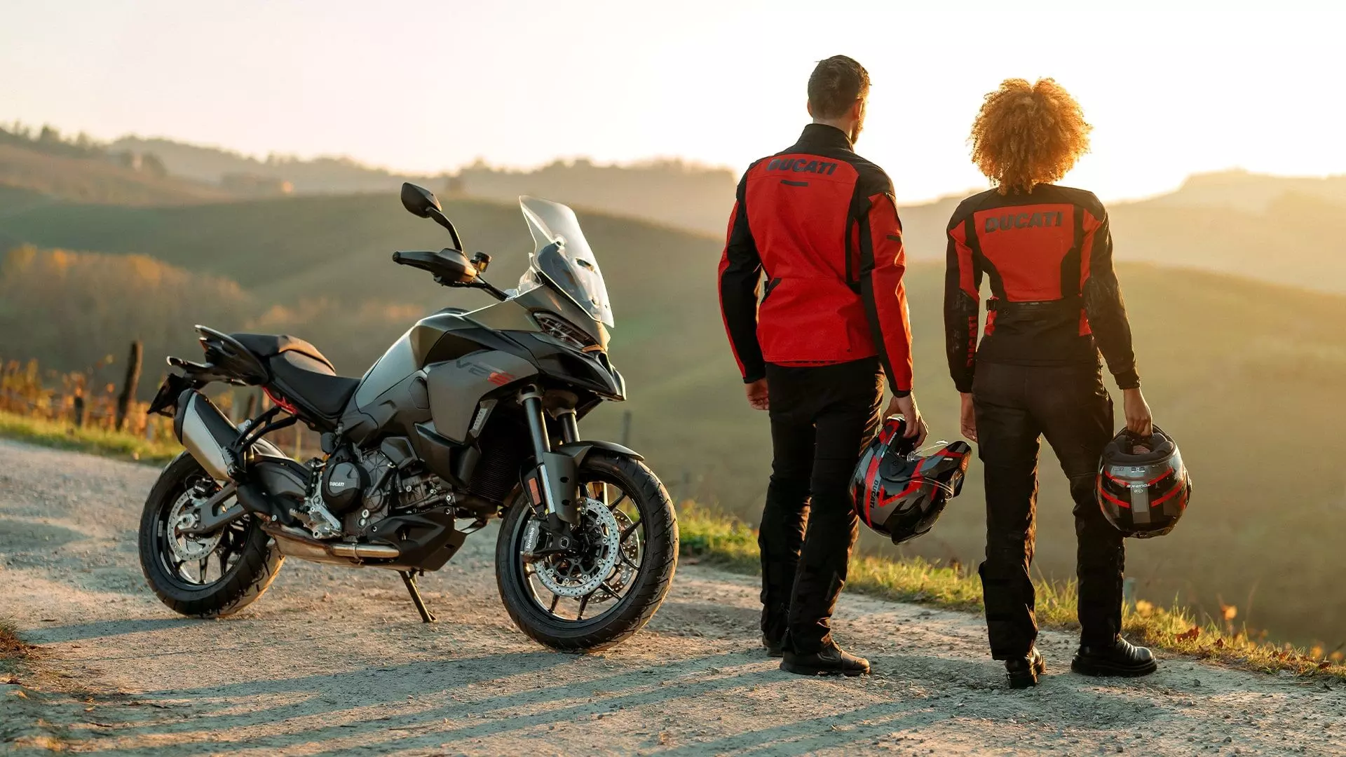 Other standard equipment includes cornering ABS, Ducati Traction Control, Quick Shift DQS 2.0, Cruise Control, and a USB dashboard socket. The new 5-inch TFT dashboard interface is multilingual, and additional features on the S variant include the Ducati multimedia system and a turn-by-turn navigation option. The new Ducati Brake Light EVO features emergency flashing during sudden braking, and the Coming Home function retains low beams after ignition is switched off for added utility.