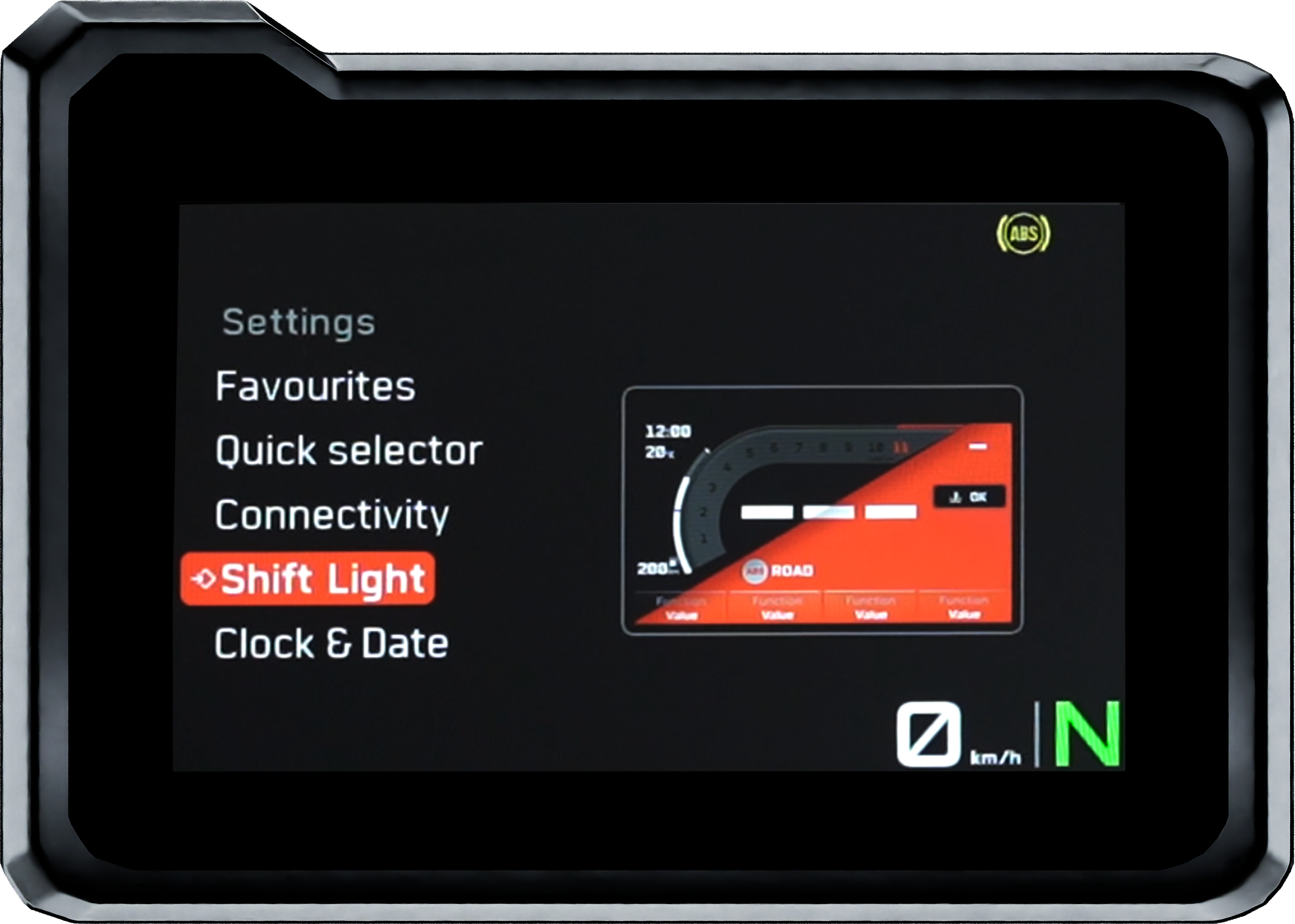 The TFT layout of menus, options, and infographics is customisable by the rider to show what is going on throughout the ride. Even shortcuts of certain functions can be customised through the screen.