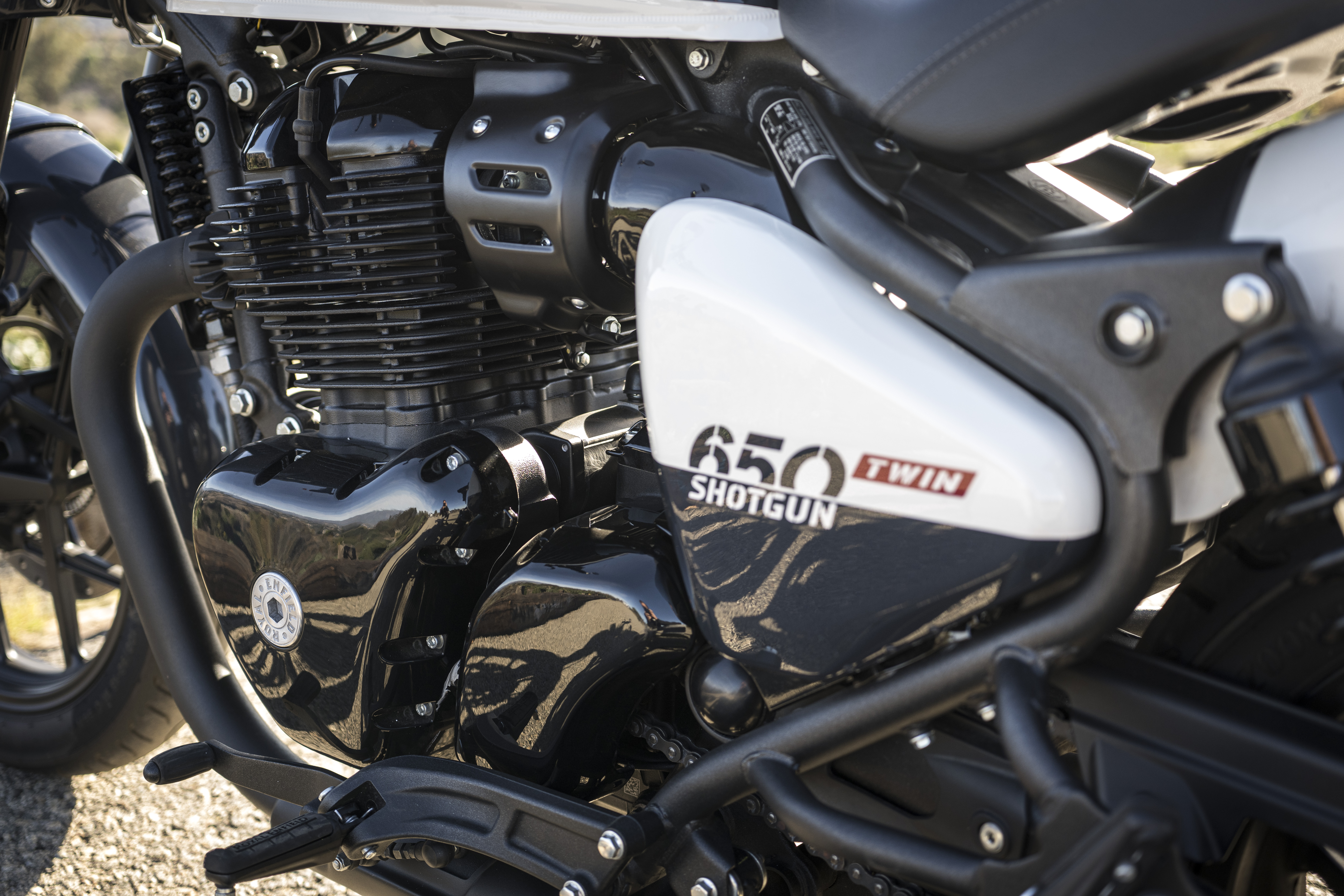 The Shotgun 650's powertrain features revised final drive ratiosRoyal Enfield Shotgun 650 powertrain
