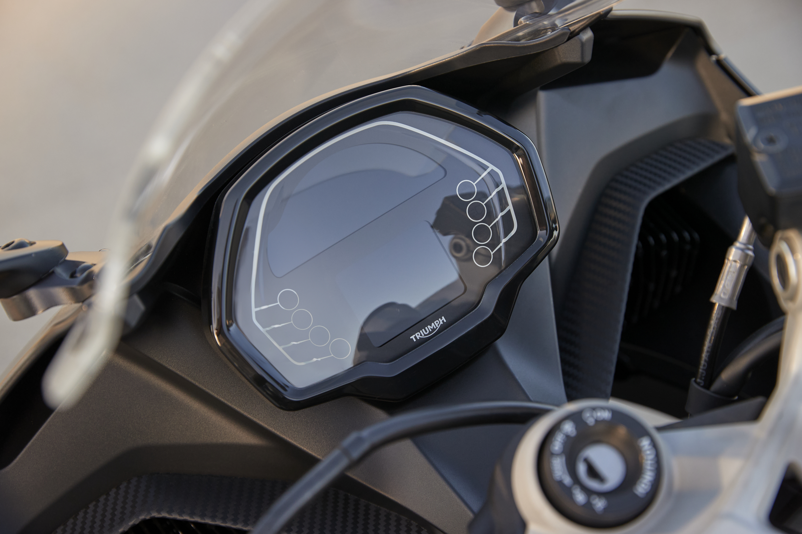 Daytona 660 gets a TFT screen with white on black displayTriumph Daytona 660 technology