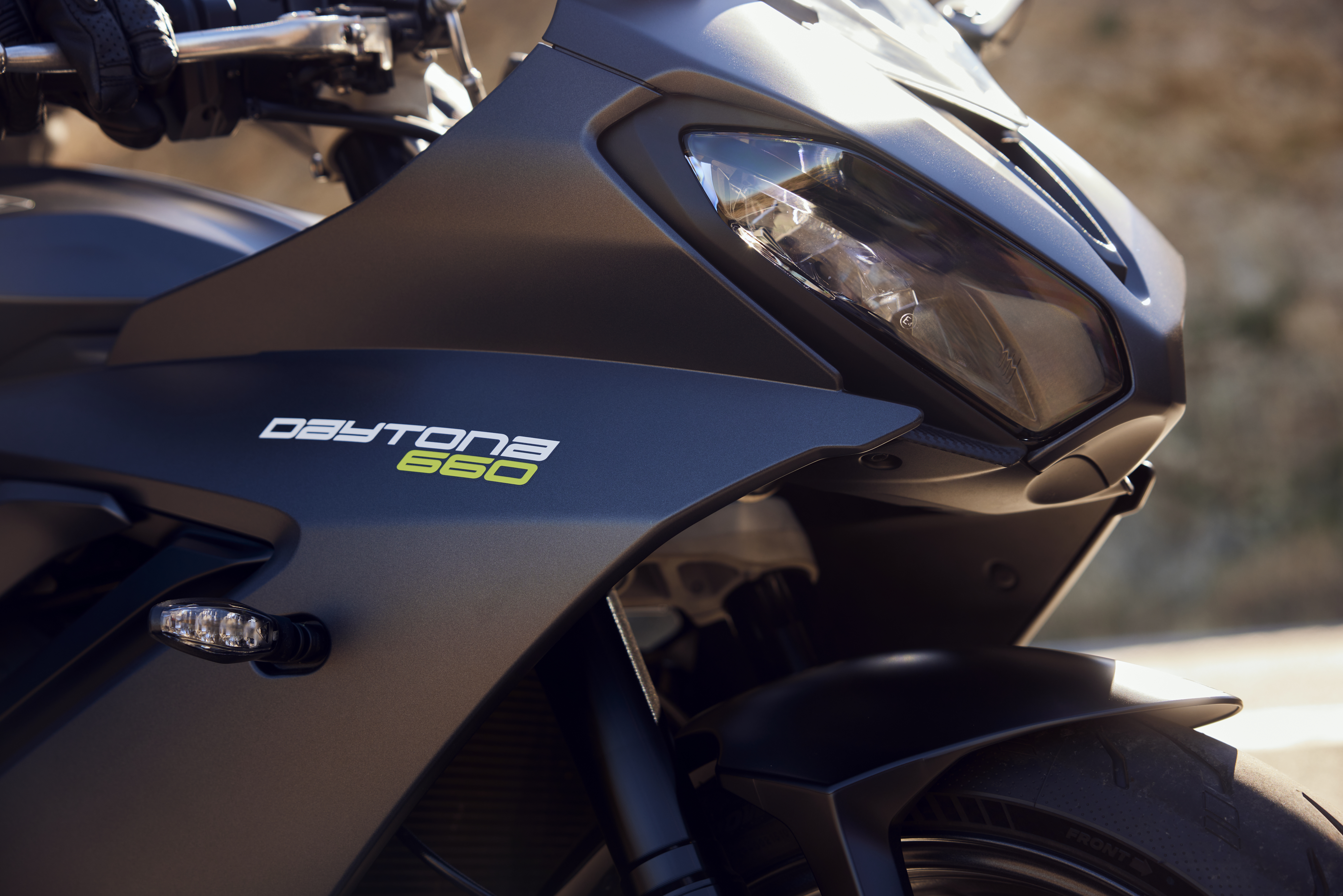 Daytona 660 sports a lightweight sports frameTriumph Daytona 660 ride