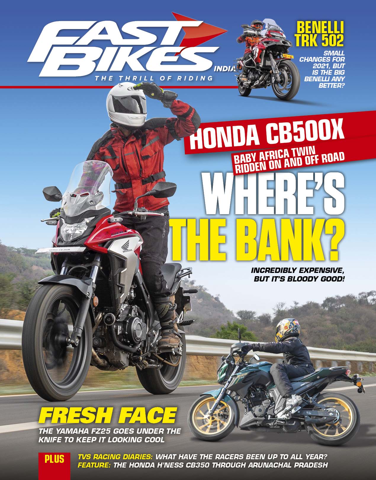The Honda CB500X is under the spotlight in this month’s Fast Bikes India section and for good reason. It is a wonderfully capable ADV that takes biking back to the basics and with 47bhp and 43Nm it’s plenty fast too. But also plenty pricey. We’ve also got on the saddle of the big Benelli — the TRK — and find out if the BS6 update does it any good, find out how different the Honda CB350 RS really is from the H’ness and there’s also Yamaha’s fresh-faced FZ 25 with a bit more equipment and finally we have a scooter that’s out of this world — the TVS Jupiter!