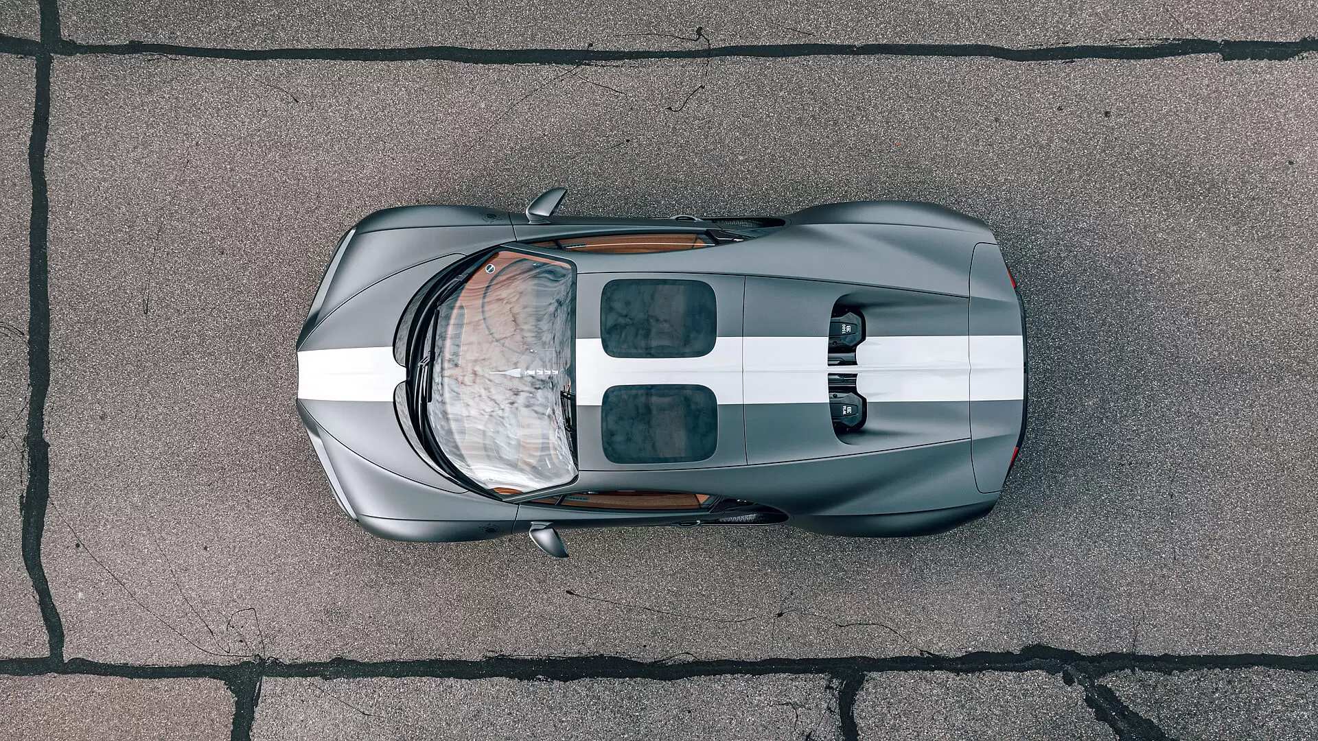 The special edition Chiron Sport gets a matt grey colour scheme like the aircraft from 20th centuryOn the outside, the Bugatti Les Légendes du Ciel gets a matt-grey colour scheme like the aircraft from the 20th century. A broad runway-like white stripe runs in the centre of the car’s body from front to the rear. The special edition gets the ‘Les Légendes du Ciel’ badge on the front fenders and also gets the blue-red-white French tricolour on the front of the side sills. The horseshoe signature radiator grille now comes finished in glossy black colour with the mesh pattern representing the parade formation of the aircraft. On the rear, the rear is made up of black exposed carbon fibre and with a black-coated exhaust trim cover.