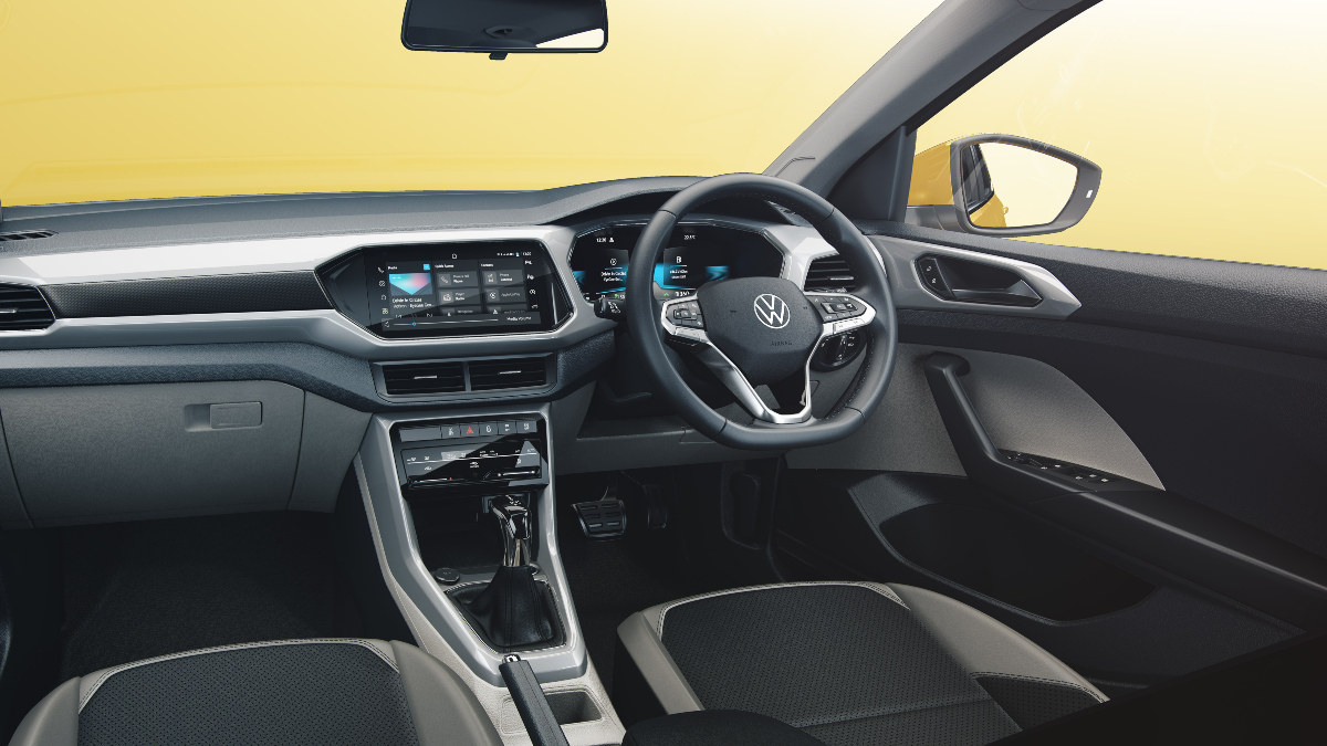 The 10-inch infotainment screen comes equipped with wireless CarPlay, Android Auto, Bluetooth connectivity and the ability to host native apps like the music streaming app like GaanaVolkswagen Taigun interiors