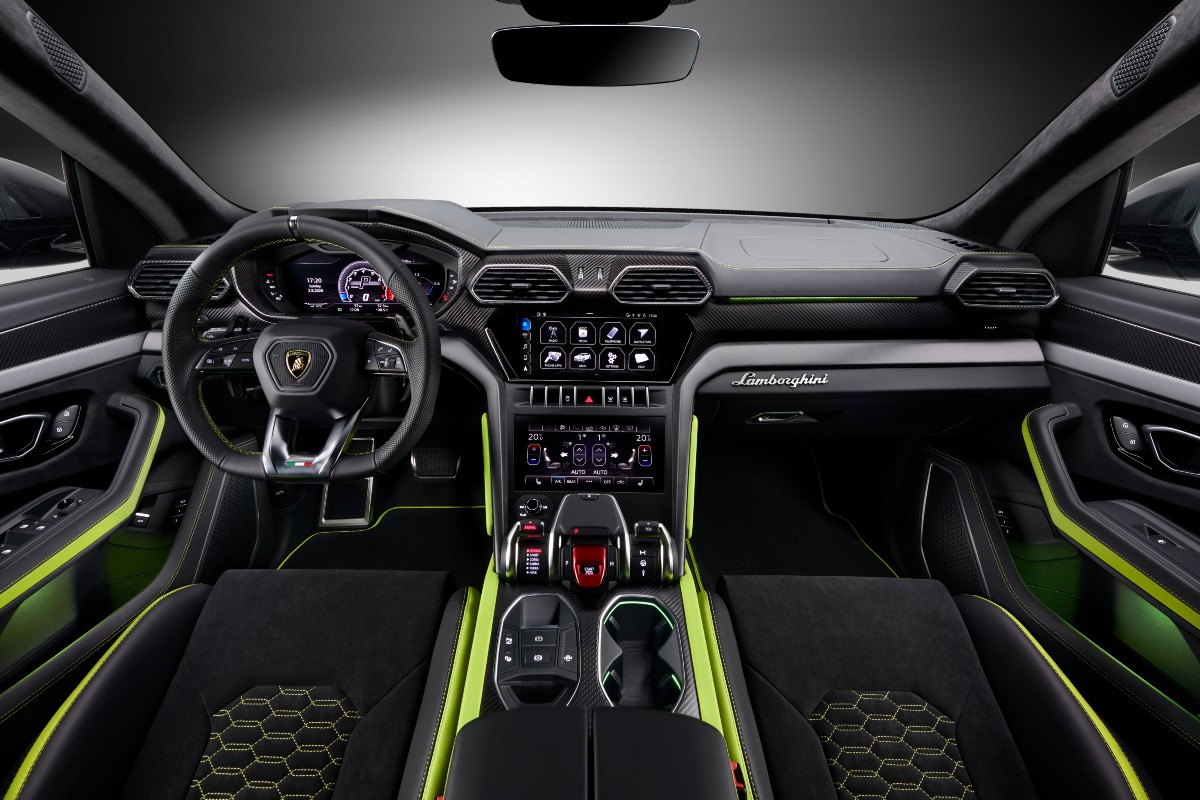 Typical Lambo cabin for the Urus Graphite Capsule – plenty of carbon fibre and Alcantara presentInterior