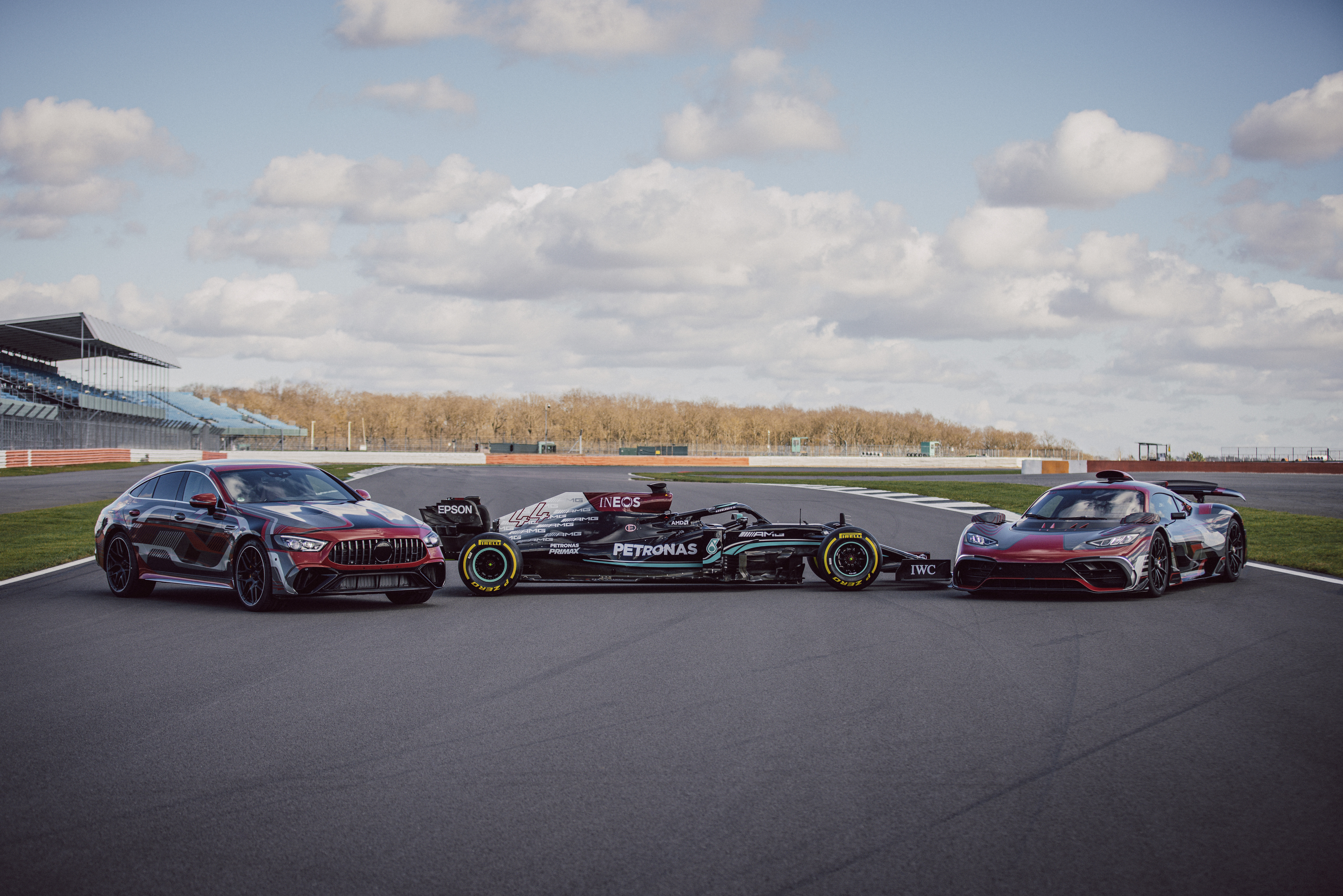 The new AMG GT 73 4-Door and the Project One hyper car sit beside the 2021 F1 contender the W12