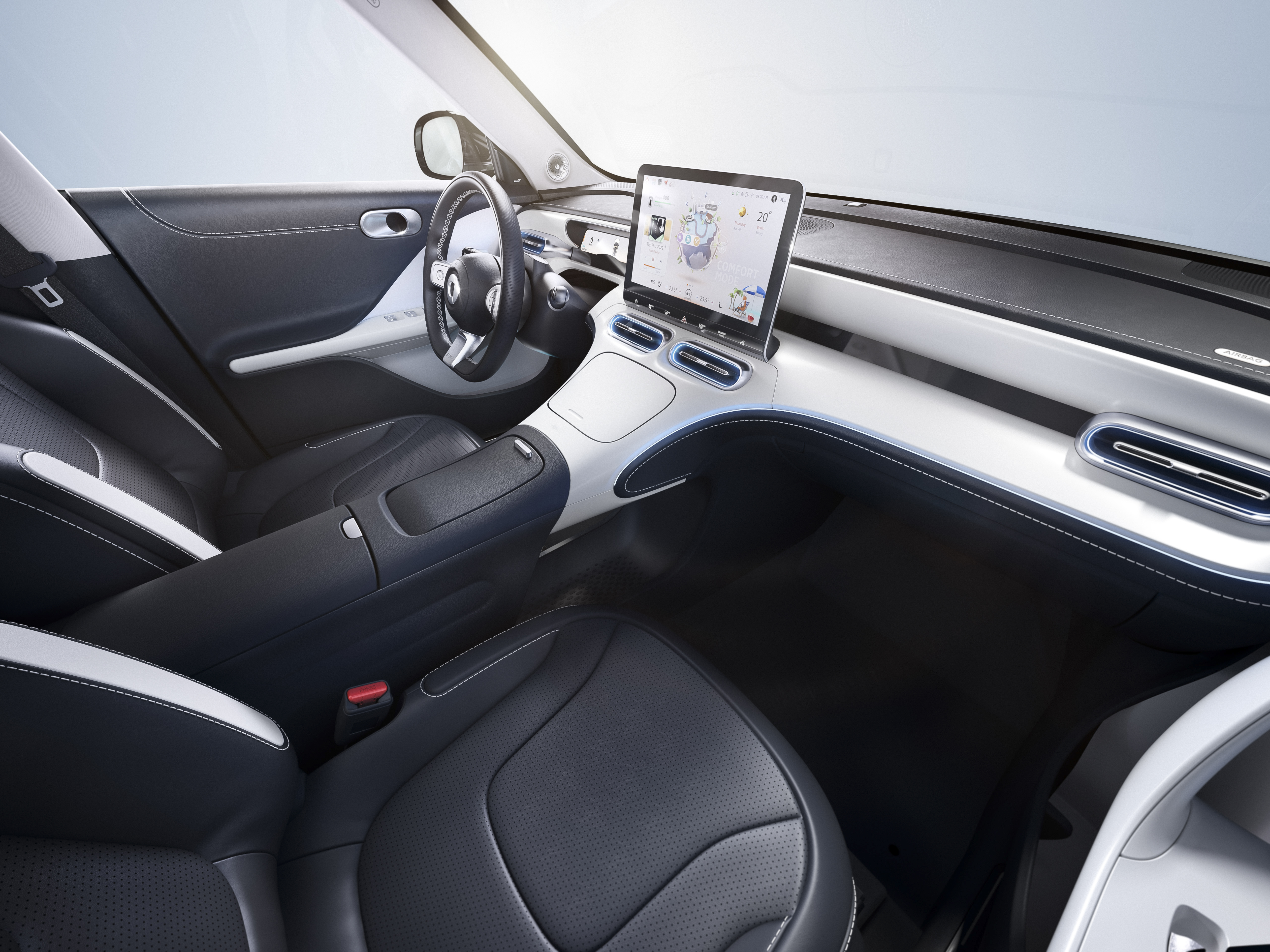 The interior has a massive HUDOn the inside, the Smart #1 has been given all the electric vehicle necessities, the most important of which is the 12.8-inch infotainment system. It also has a 9.2-inch instrument cluster, but curiously, Smart has also provided an enormous 10-inch Heads-up display. Smart has made very efficient use of space, with the wheels stretched out to all four corners of the car through a long wheelbase. For safety, the Smart also has a full ADAS suite.