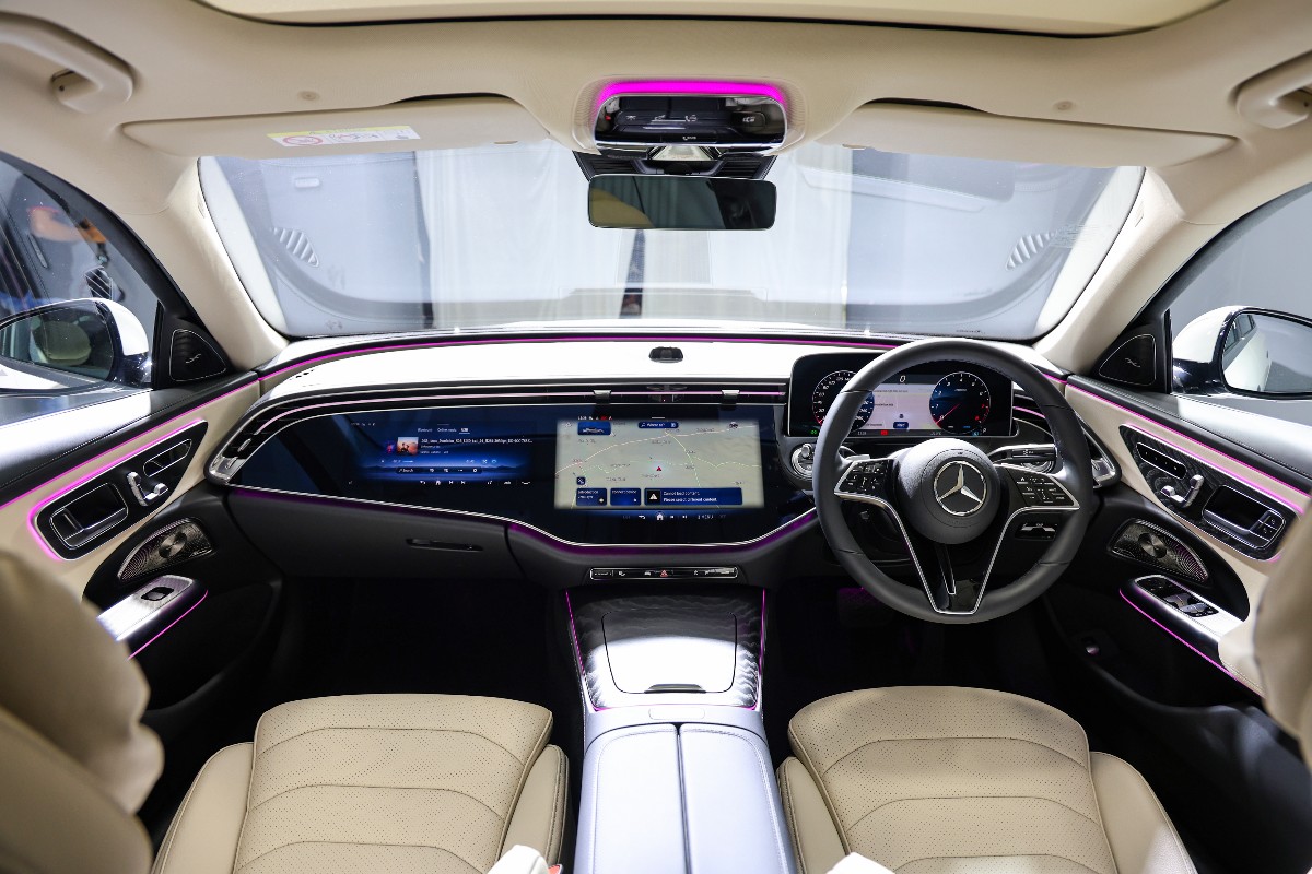 On the inside of the E-Class, you get Mercedes’ Superscreen on the dashboard with three distinct screens — the floating 12.3-inch instrument cluster, a massive 14.4-inch infotainment screen, and a 12.3-inch passenger display. These screens run the latest version of Mercedes’ MBUX infotainment. With the Routines feature, you can programme the car to do certain things. For example, you can automate the window rolling down when you reach your office building so that you can punch in when you enter. The screen also supports Microsoft 360 apps like Word, Excel and PowerPoint, and a camera on the dash also supports video calls. The features list includes a 4D Burmester audio system and four-zone climate control, along with digital air vents that can be adjusted from the screen.