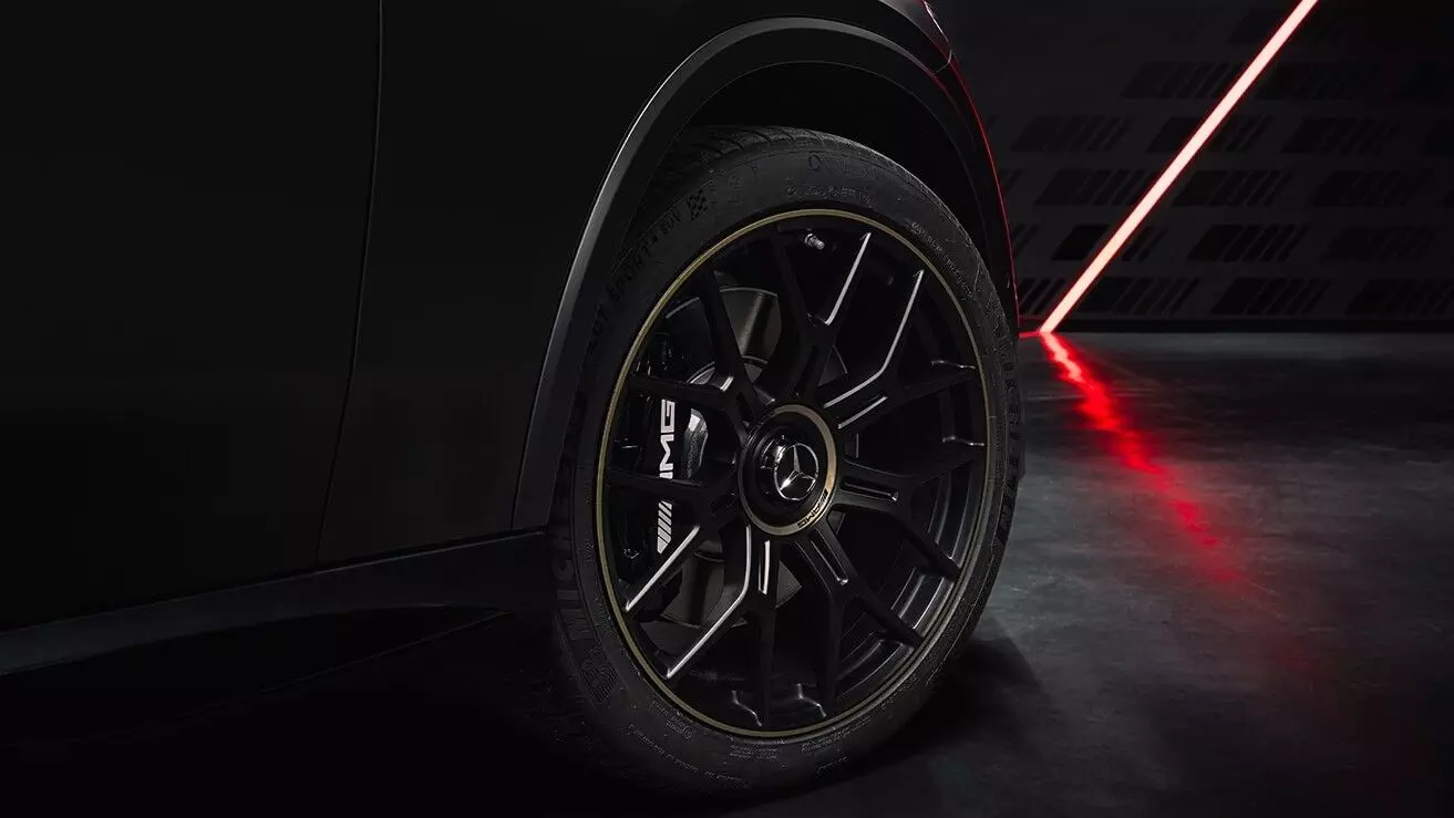 In a general sense, it looks very similar to the AMG GLC 43, with the vertically-slated ‘Panamericana’ AMG grille, flanked by angular quad-LED projector headlights and AMG front apron elements on the lower bumper. The rear too gets the familiar wire-frame LED tail lights as seen on the AMG GLC 43 and AMG CLE 53. The ‘Golden Accents’ Package leads the charge on the updated design front. Mercedes calls its secondary colour ‘Techgold’ with a golden AMG branding above the side skirts on the exterior, another notable element is the golden pinstriping on the 21-inch AMG cross-spoke wheels in matte black. The said package will get two main exterior paint options to choose from – Obsidian Black Metallic and Graphite Grey Magno. The same golden shade will adorn the cabin’s black leather AMG sports seats, along with AMG floor mats with contrast stitching. The face of the dashboard features glossy carbonfibre trim which is accompanied with a subtle golden hue. It will have two other optional packages on offer – AMG Night Package and AMG Night Package Plus.