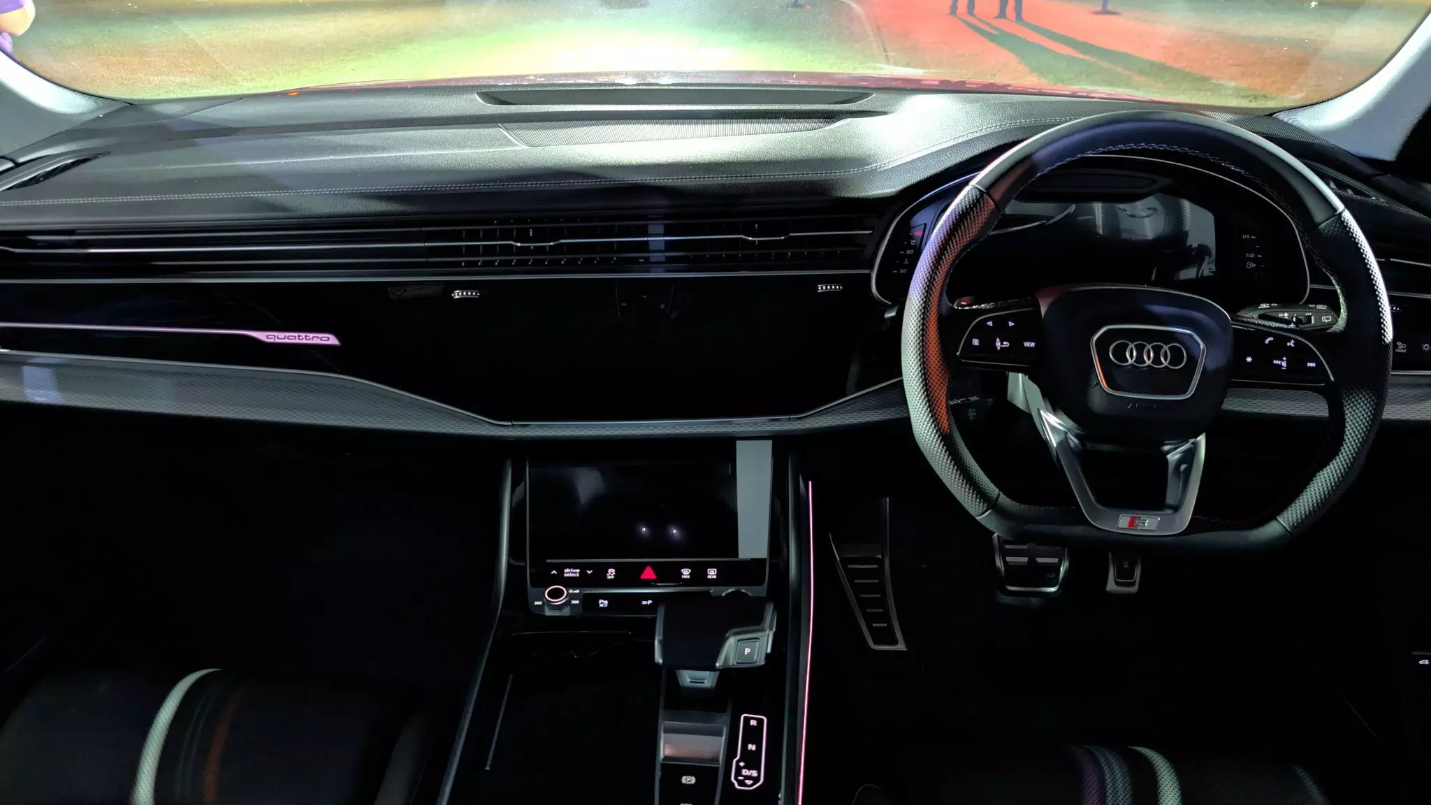 Step inside, and you’re greeted by a typical Audi cabin, it’s of course, based on the standard Q8. There are ‘S’ specific touches such as unique embossing on the seat headrests, badging on the steering wheel and on the co-passenger side dashboard. It gets surfaces finished in materials such as Alcantara and satin metallic trim pieces. The 12.3-inch digital cluster gets an ‘S’ theme for the infographics, while the 10.1-inch infotainment and 8.6-inch climate control screens remain unchanged. The front gets sports seats with power adjust and heating function. Audi offers a Bang & Olufsen sound system as an added option.