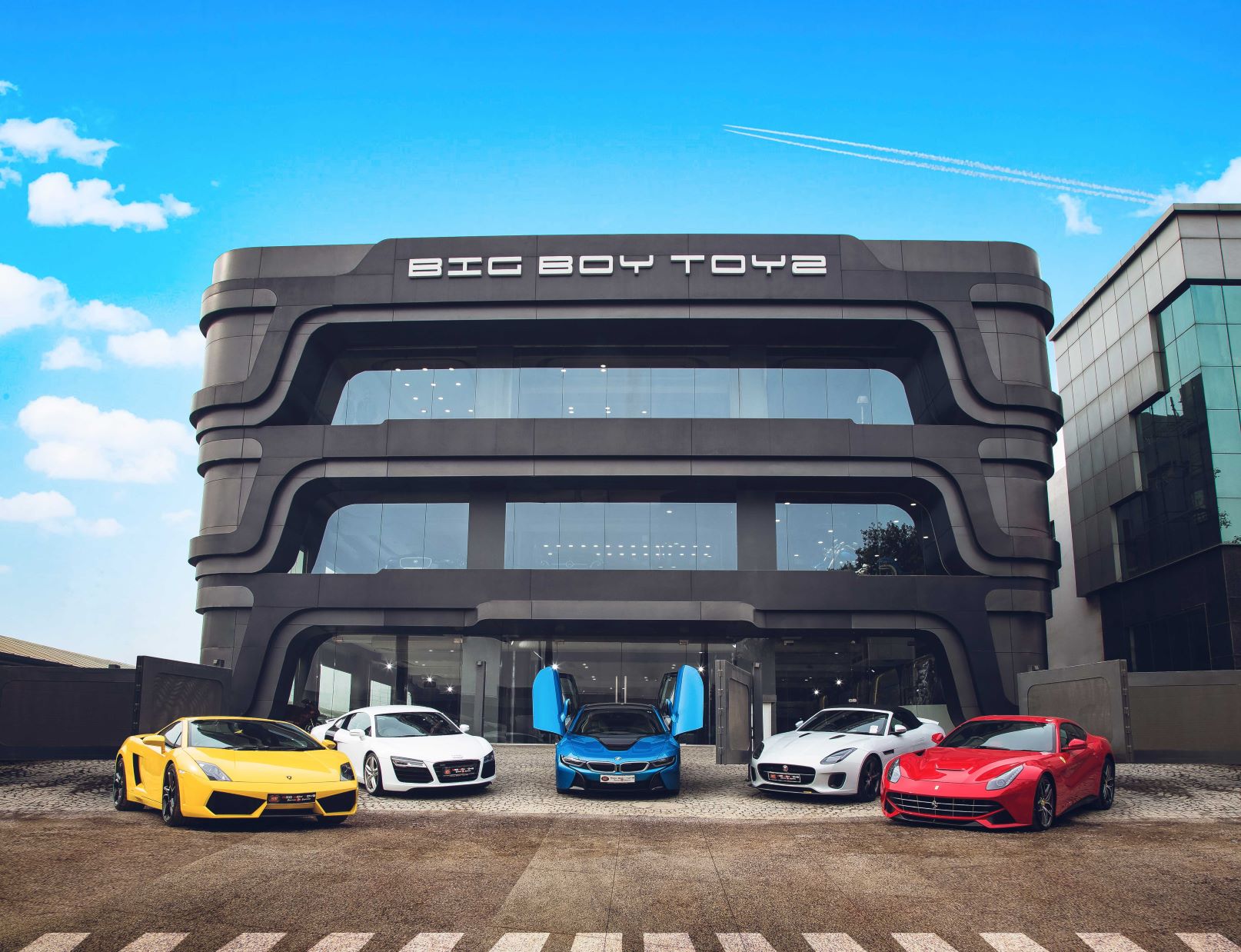 A slew of supercars outside the flagship Big Boy Toyz showroom in Gurugram