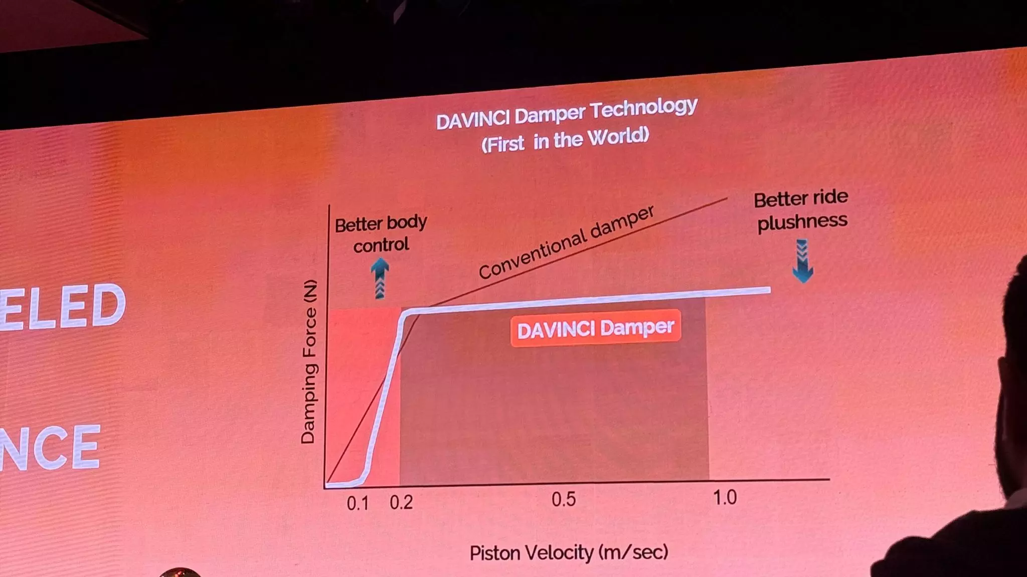 This damper doesn’t have a linear velocity-force curve. Mahindra says it’s tuned to be rather soft at very low shaft speeds and then quickly dials it up, past this threshold and then levels off flat. Compared to a conventional damper, it is more compliant for low piston velocities, and mid-range piston velocities offer strong balance between body control and comfort, while at really high piston velocities (like a sharp bump) the damping is less than on a conventional damper and allows those hits to feel less jarring.