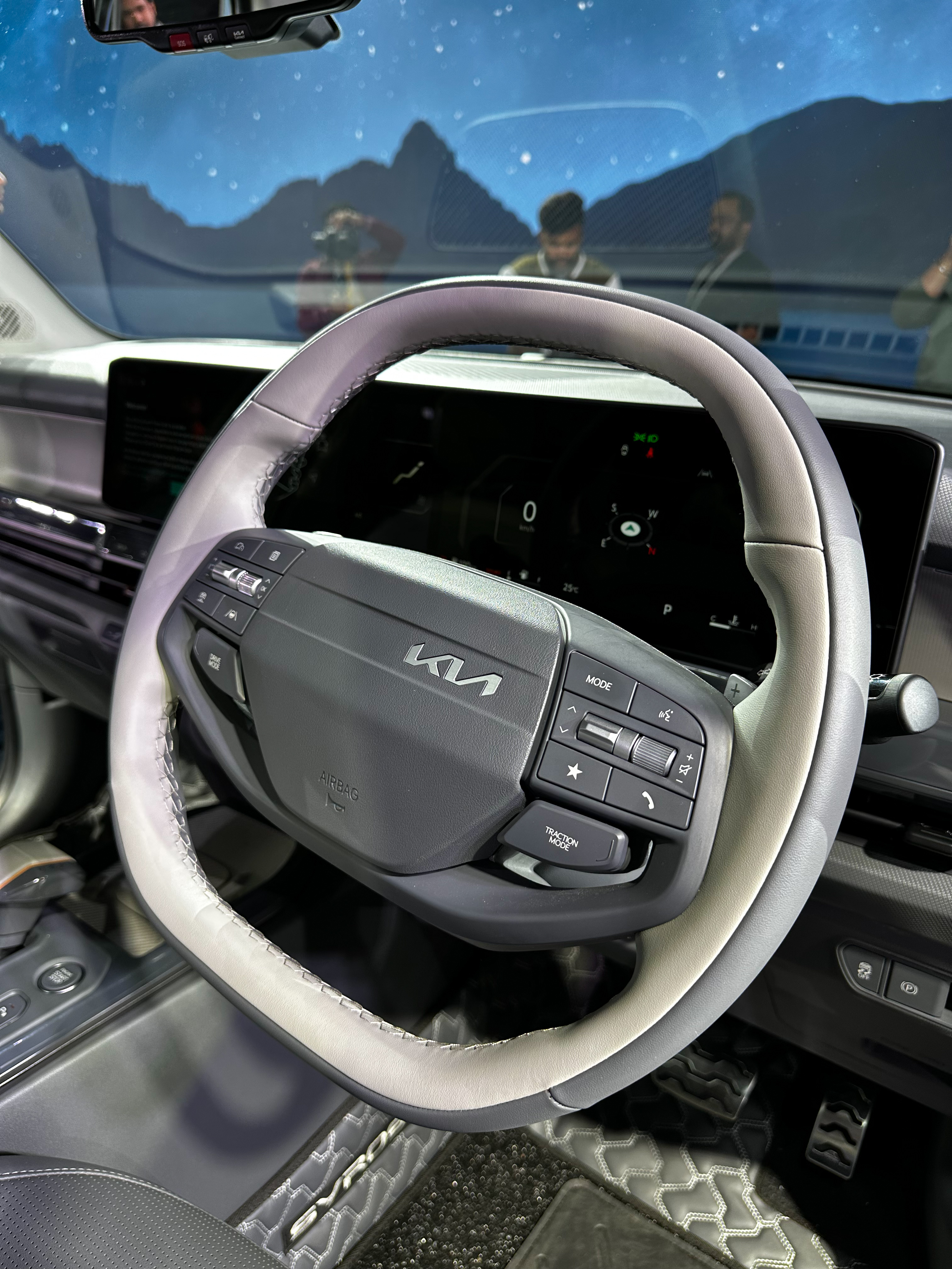 Steering wheel resembles that of the Kia EV6Kia Syros interiors and features