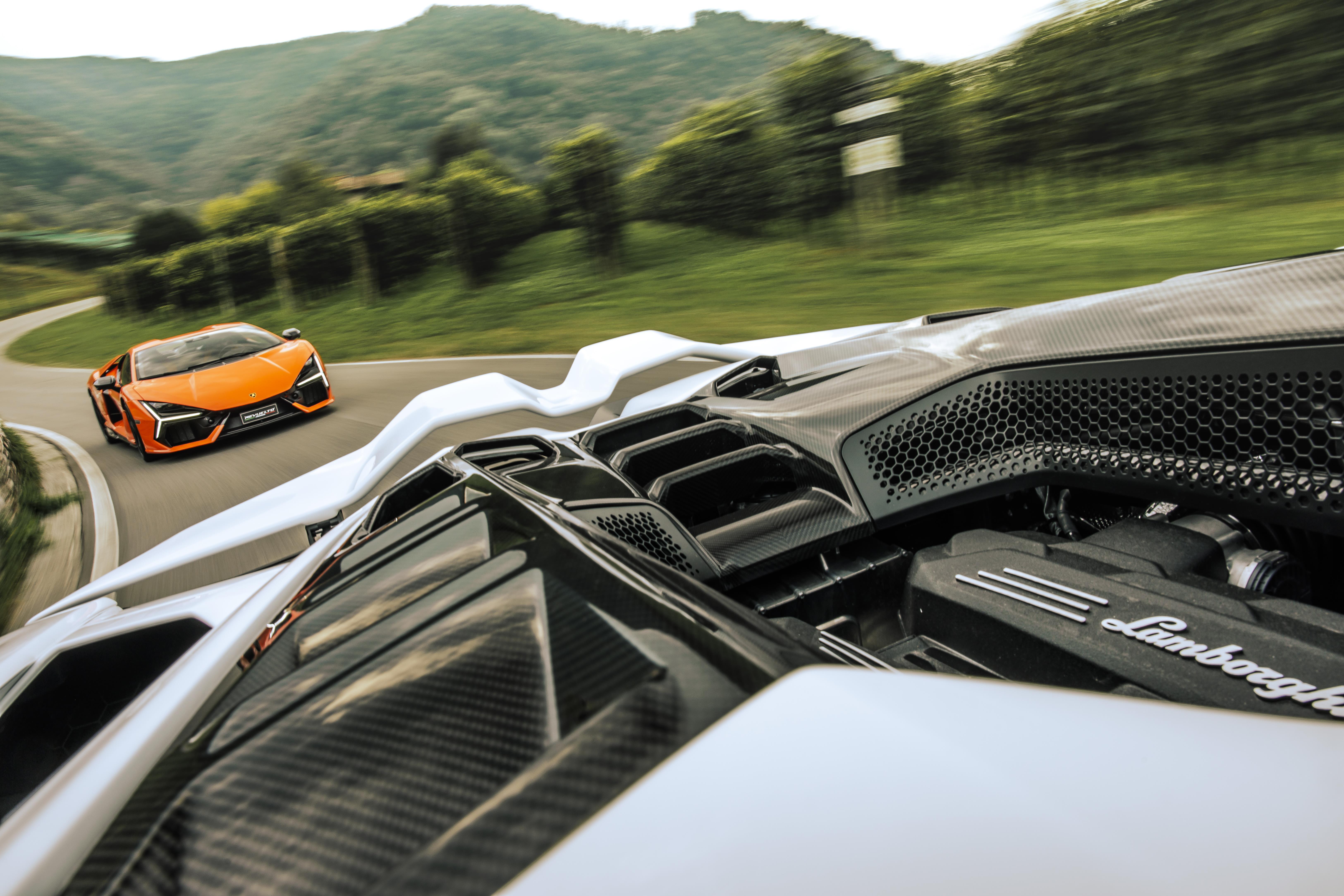 The engine cover cutout in the Lamborghini Revuelto