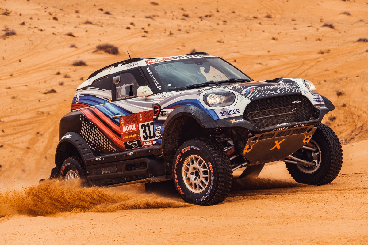 RallyThe Rally car, launched back in 2016 is the revised version of the All4 and has an updated design based on the newer generation Mini Countryman. The engine on the Rally is the same as the one on the Buggy. So, power and torque outputs are identical. The major difference is that the Rally gets an all-wheel drive system over the Buggy’s RWD. The Rally car also uses a six-speed gearbox but this one is provided by Sadev, while the differential is provided by Xtrac. At 1850kg, the Rally weighs 265kg more mainly due to the AWD system, a larger 365-litre fuel tank and the capacity to load an additional third spare wheel. The suspension travel on the Rally car is considerably lower than on the Buggy at 280mm (150mm less than the buggy), but the AWD system helps the Rally car go faster over the more challenging terrain where grip is of paramount importance (dunes, crests, rocks, etc.) . The Rally also sports higher profile tyres wrapped around 16-inch wheels. According to the drivers, the Rally and the All4 are a lot more precise and stable. One major drawback for the Rally and the All4 are that according to regulations they cannot have an auto inflate/deflate system in the cockpit, so, drivers have to stop and manually set tyre pressures.
