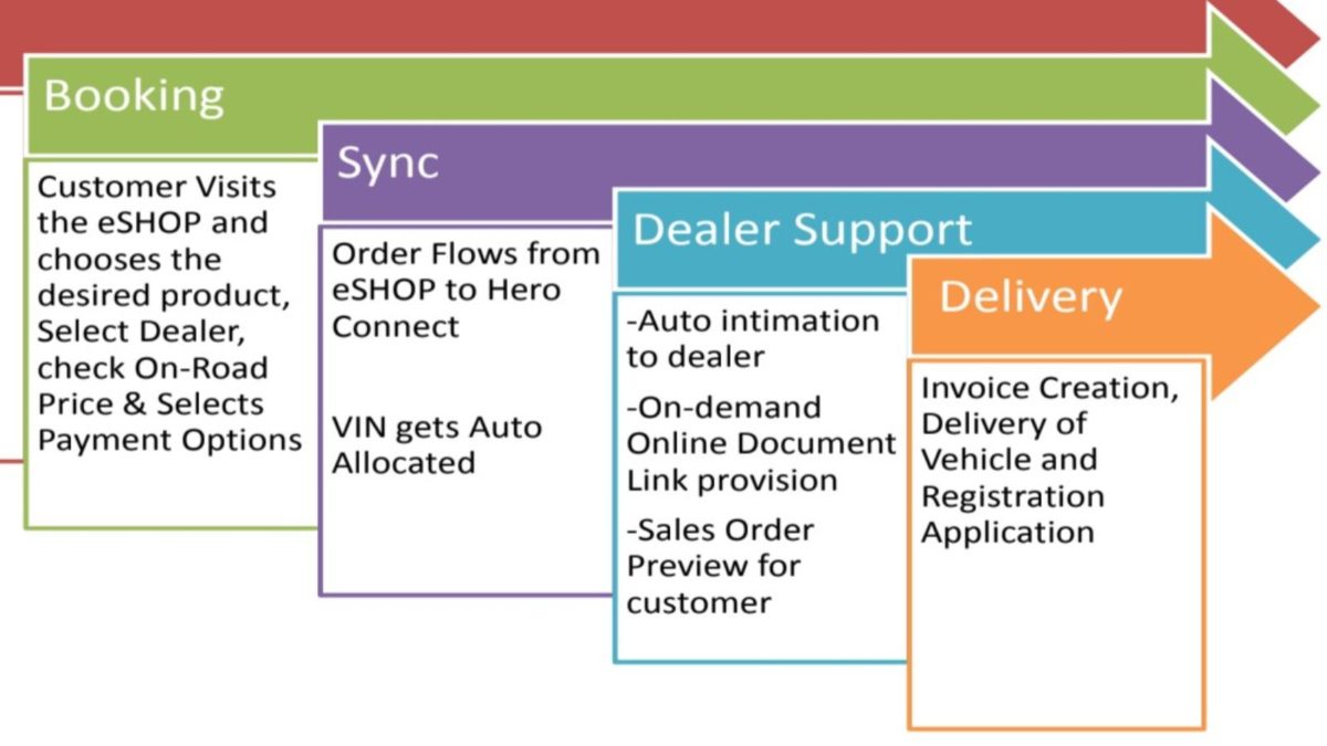 eShop enables a completely digital buying experience for the customers. All the purchase-related information and actions are built into the system, allowing customers to purchase their preferred motorcycle or scooter directly from the company website. Customers can visit the official Hero MotoCorp website and access eShop which redirects them to the online buying/booking channel.