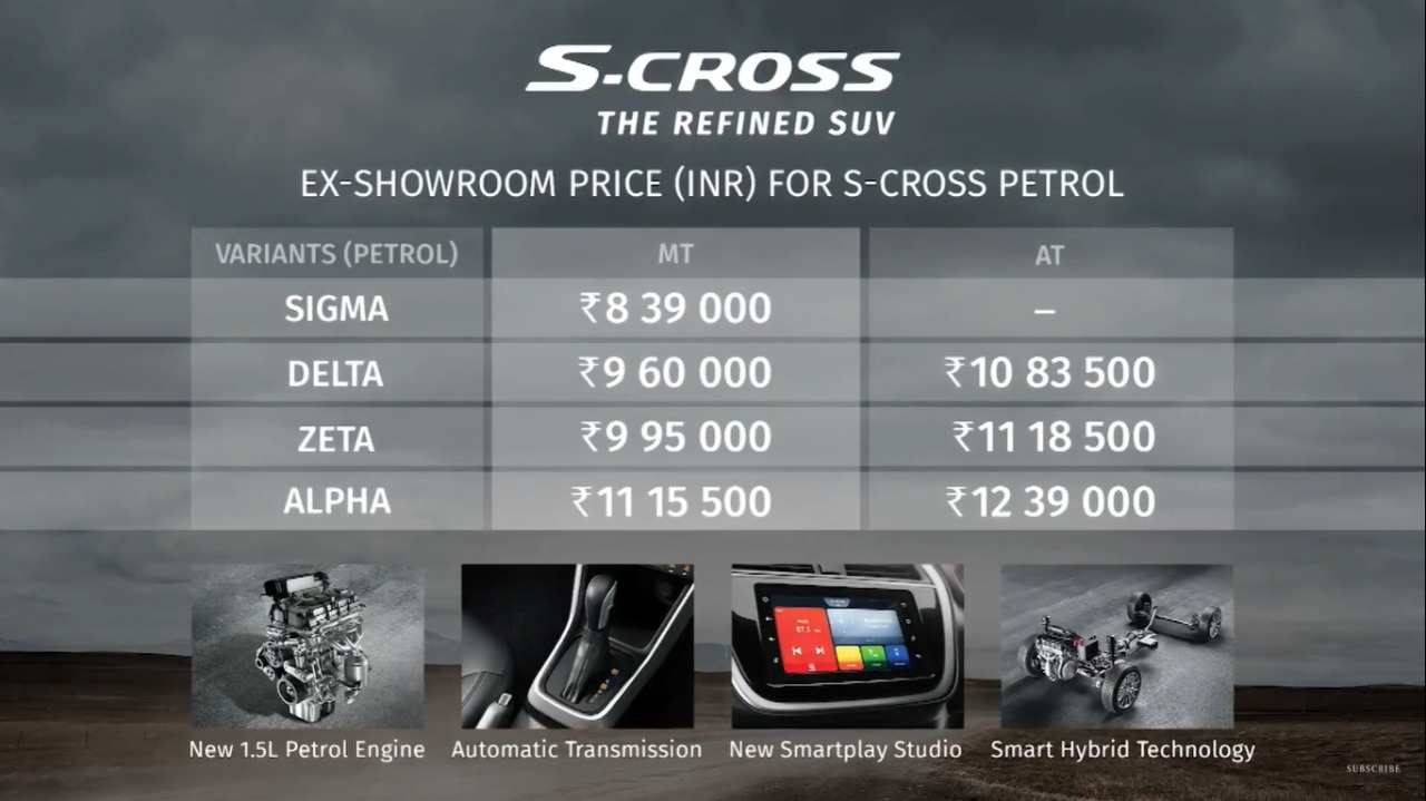 Here’s the full price list of the 2020 Maruti Suzuki S-Cross