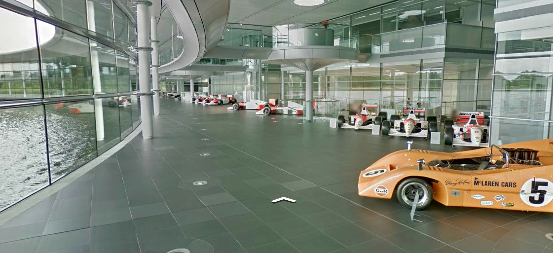 The McLaren Boulevard is the place to be on this virtual tour where you see all the previously mentioned cars. You can also marvel at the architecture that Norman Foster-designed these are the same folks that have designed most of the new Formula 1 tracks and then known for their spectacular architecture.