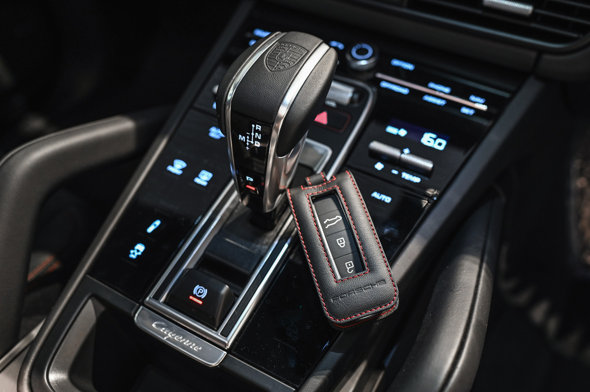 Porsche Exclusive Manufaktur keyfob and gear selectorTo show us what the after product looks like, the Porsche Centre in Kochi had two one-off units of the Cayenne GTS and the Panamera Turbo S for us to see. The Cayenne GTS was finished in a gorgeous Carmine Red and was fit with 21-inch RS Spyder Design wheels and also got the GTS interior package with contrast stitching and a whole bunch of Alcantara in all the right places, Apart from that it also included the Sport Chrono Package with the Porsche Design Subsecond Clock, a custom gear selector, Porsche Rear Seat Entertainment with a Bose surround sound system, tinted LED matrix headlights including Porsche Dynamic Light System Plus and the Carbon Design Package. The Panamera Turbo S wore a ‘GT Silver metallic’ shade and was fit with 21-inch Panamera Exclusive Design wheels with a bunch of carbon fibre accoutrements like the side skirts, and front and rear aprons. It was also fit with the Sports exhaust system to allow the symphony from the turbo V8 to sound that much better. Other exterior changes included the Porsche Dynamic Light System Plus and Exclusive Design taillights. The interior was graced with Abachi Anthracite wood finish trims and included the Sport Chrono Package with the Porsche Design Subsecond clock and an Exclusive Design gear selector.