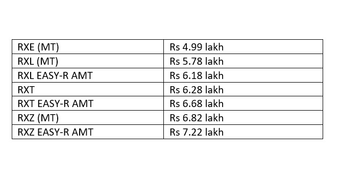 Variant wise pricing for the Renault Triber