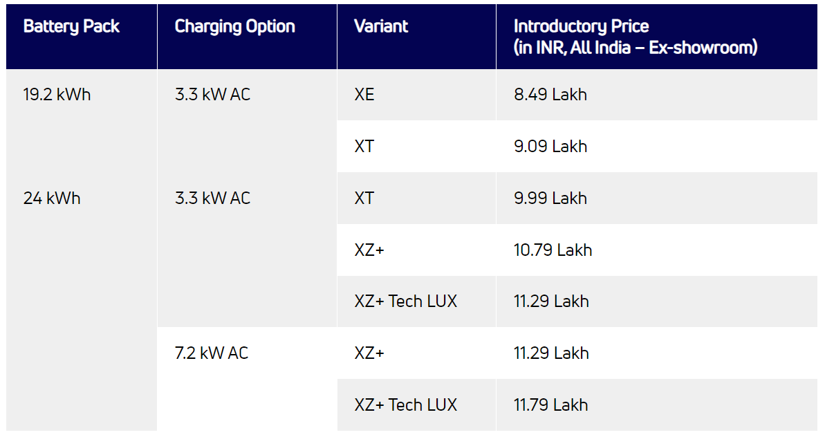 Here is a complete breakup of the pricing of the Tata Tiago EV: