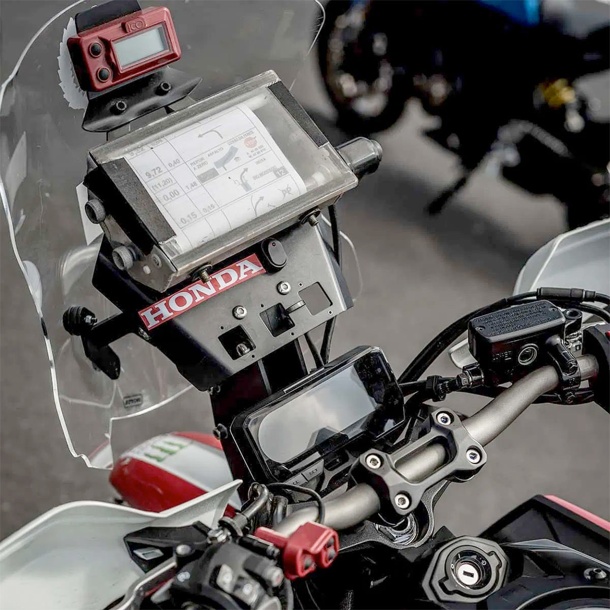 It’s a fantastic looking machine, which is far removed from its CB650R base. It gets a new front mudguard, windscreen and headlight. There’s a solo seat, new handguards, fork guards and header pipes too. It was also fitted with a set of Continental TKC 80 tyres on a set of 17-inch spoked wheels – and to complete its Dakar inspired styling, Wingmotor fitted the bike with a proper rally raid navigation system, including a roadbook.