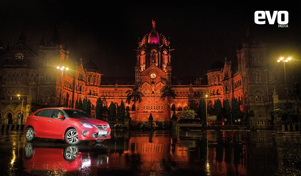 Driving the Glanza around the night streets of Mumbai