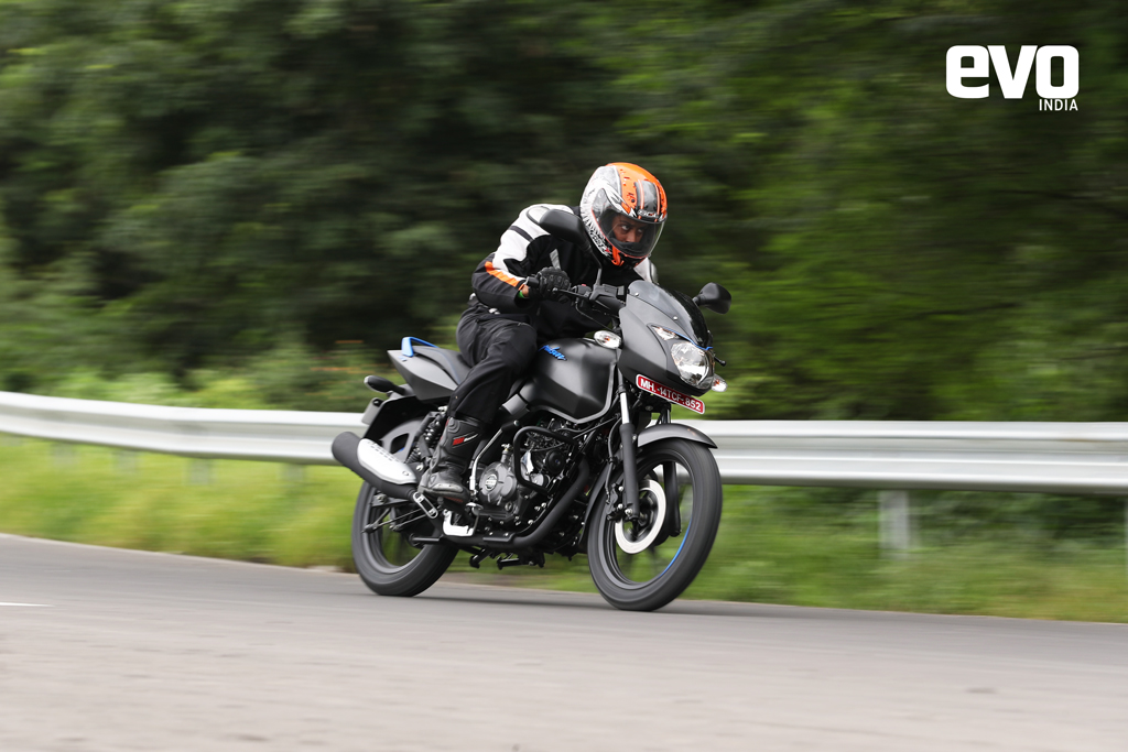 That said, there were a quite a few chinks in the armour. Drop below an indicated 30kmph in anything above second and you’ll need to keep dialling in the revs to stop the motor from stalling. Next, the front brake seemed imprecise when executing sudden stops and the CBS system, which Bajaj says has a 60:40 front to rear split, was ineffective on our test bike after about 70kmph unless given a good stamping, defeating the intended purpose of effective braking distribution. This, coupled with the absence of usable knee recesses on the tank, means that panic braking situations may end up with the rider being easily unsettled. Lastly, the Pulsar 125 comes with a choice of MRF and Eurogrip tyres (80/100-17 front, 100/90-17 rear). The Eurogrips on our test bike weren’t the best when it came to gripping on wet roads, and were just about adequate for cornering.