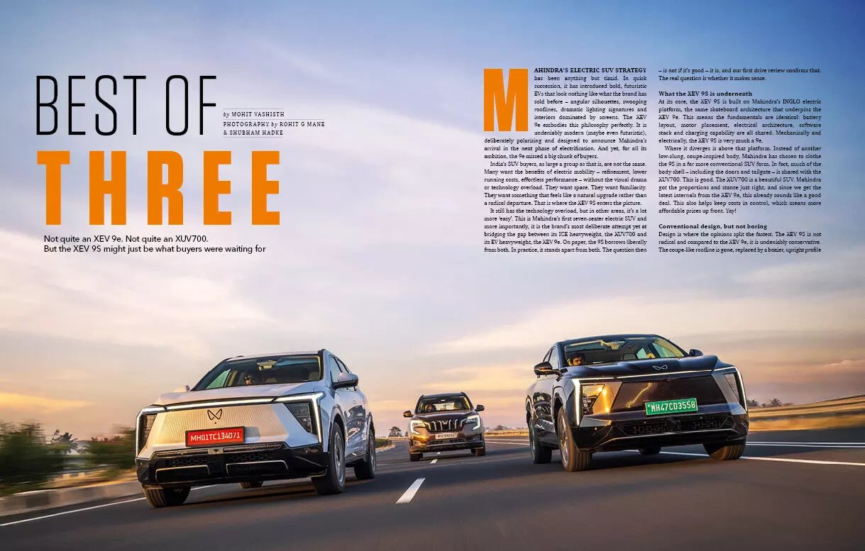 This issue also has in store a trilateral comparo with Mahindra XEV 9e, XEV 9S and XUV700, reviews of the new-gen Kia Seltos, Tata Harrier and Safari petrol, Maruti Suzuki e Vitara, Renault Triber, Citroen C3 X and a lot more