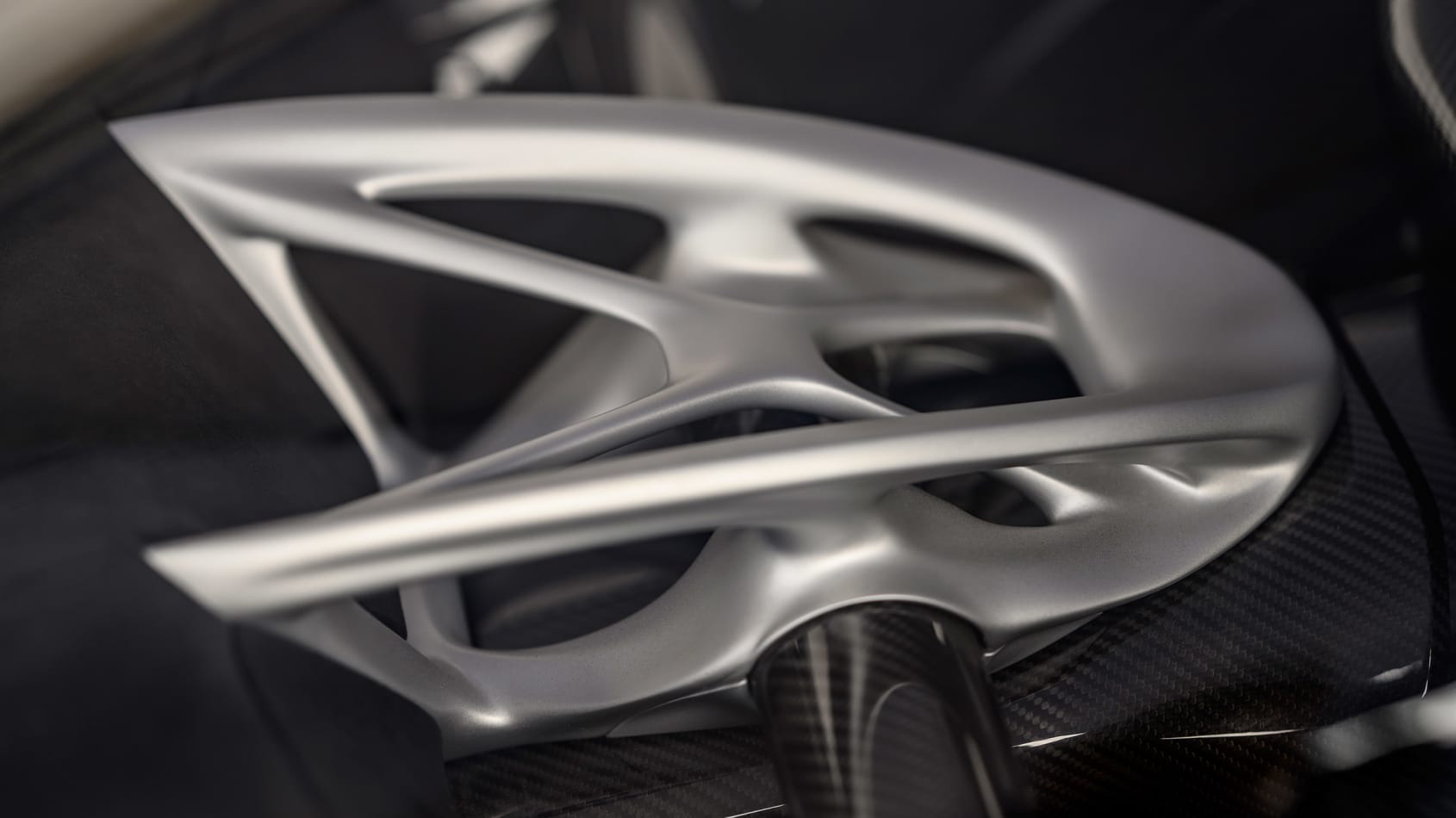 Something that Czinger does specify is its use of additive manufacturing (3D printing) and advanced composites, taking full advantage of new-age techniques to make the 21C as rigid and lightweight as possible. Peel back the layers and we can see carbonfibre torsional supports and 3D-printed nodes knitting the structure together in a similar way to a traditional tubular steel space frame. More than just being a lighter and less time-consuming way of producing these sorts of complex shapes, 3D printing also allows engineers and designers to reduce material in non-critical structural points, lending an organic aesthetic quality to these internal components. Complementing the contemporary structure will be fine, book-matched carbon exterior panels, and a simple interior with a single information display ahead of the driver.