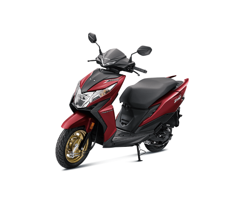 The higher variants of the 2023 Honda Dio now feature new alloy wheels, however, the rest of the hardware remains unchanged. The scooter continues to utilise telescopic front forks and a three-step preload adjustable rear suspension, providing effective shock absorption capabilities. For braking, it is equipped with 130cc drum brakes on both the front and rear wheels. The Dio rides on 12-inch front and 10-inch rear wheels, fitted with tubeless tires. Notable dimensions include a 5.3-litre fuel tank, 160mm of ground clearance, and a kerb weight of 105kg.