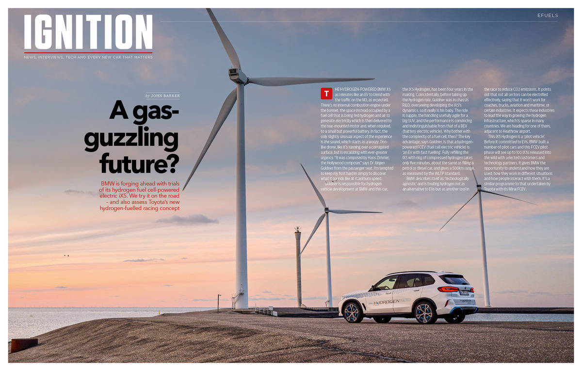 BMW is forging ahead with trials of its hydrogen fuel cell-powered electric iX5, now having spent over four years in testing. A key advantage to a hydrogen-powered car is that it is like ‘an EV with fast charging’ fully refilling the iX5 with 6kg of compressed hydrogen takes only five minutes, about the same as filling a petrol or diesel car, and gives 500km of range, We try it on the road and also assess Toyota’s new hydrogen-fuelled racing concept – GR H2 Racing Concept.