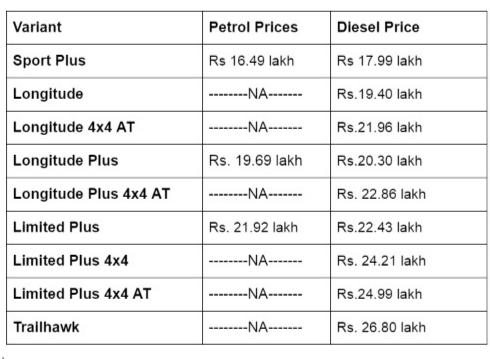 Here is a list of revised prices of the Jeep Compass ( all prices are ex-showroom, Pune):