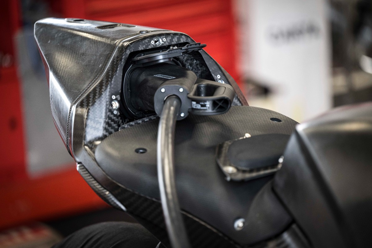 Charging socket hidden in the tail sectionThe V21L is also backed by an 18kWh battery pack, and while Ducati hasn’t mentioned the exact range, it says a 0-80 per cent charge takes up to 45 minutes. It also says the bike does not need to cool down to begin the charging process thanks to a liquid-cooling system with a dual circuit.