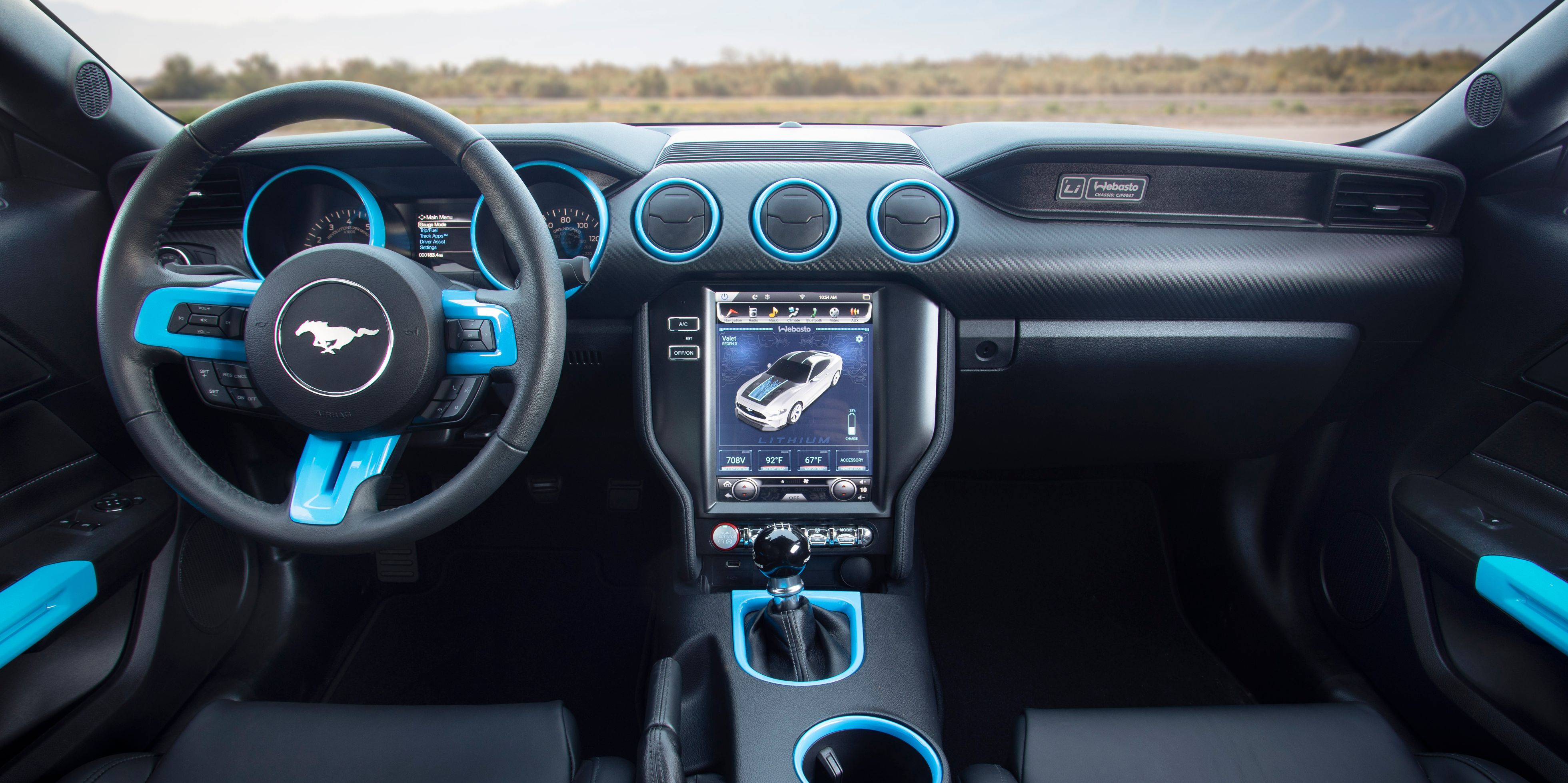 The Mustang Lithium gets a lot of kit, it is a prototype after all, To aid handling Ford has given it their Performance Track Handling Pack and strut tower brace, the anchors are in the form of Brembo six-piston brakes in the front (from the Shelby GT350R). The side splitters and rear diffuser are provided by Sankuer Composite Technologies. Showing off Webasto’s prowess is the see-through polycarbonate hood and the TurboDX charging solution and TurboCord portable charger which are also courtesy of Webasto. The bodywork is carbonfibre, ride height is lowered by an inch and the car rides on 20-inch forged rims. If you’re not drooling yet, It gets four driving modes — Valet, Sport, Track and Beast. A driving mode called Beast is all I wanted in my car when I was a kid!