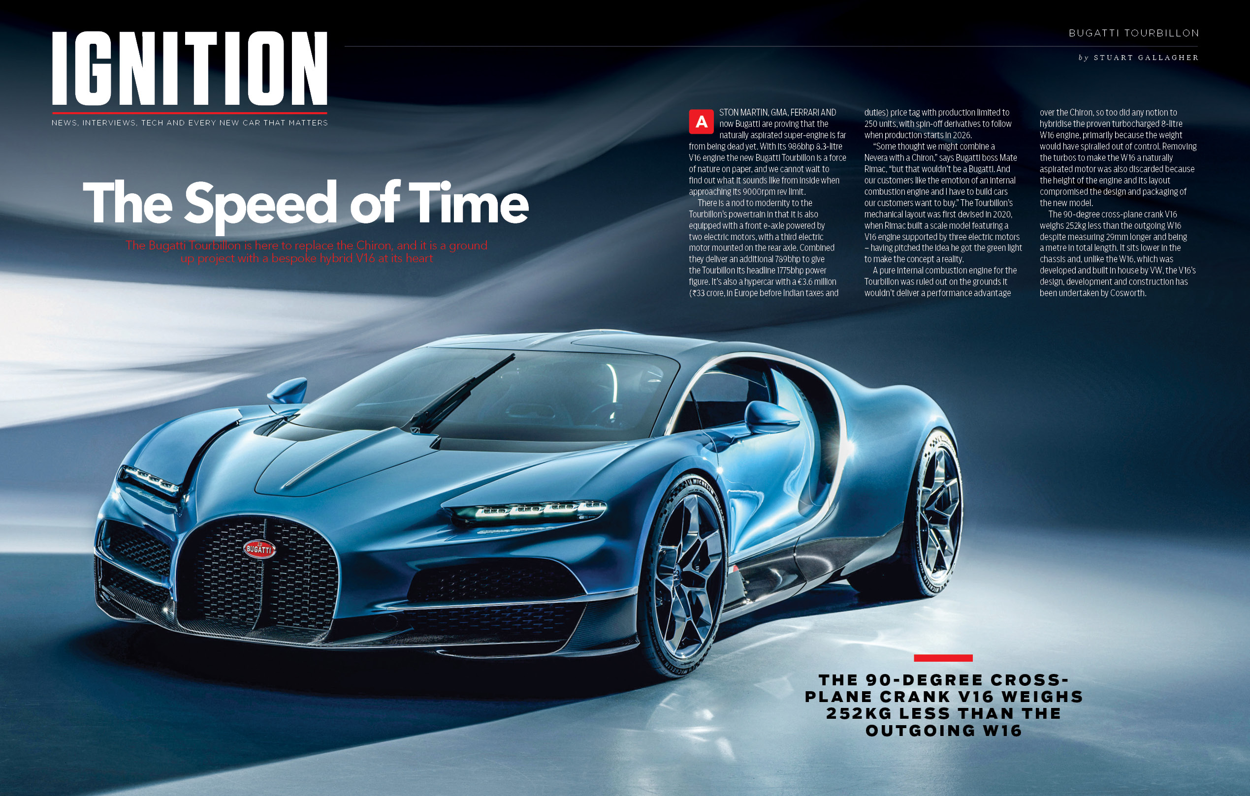 Also in this issue, posters are back. And we have reviews of the Altroz Racer, BMW i5 M60, Aprilia RS 457, and all the dope on the new Bugatti Tourbillon