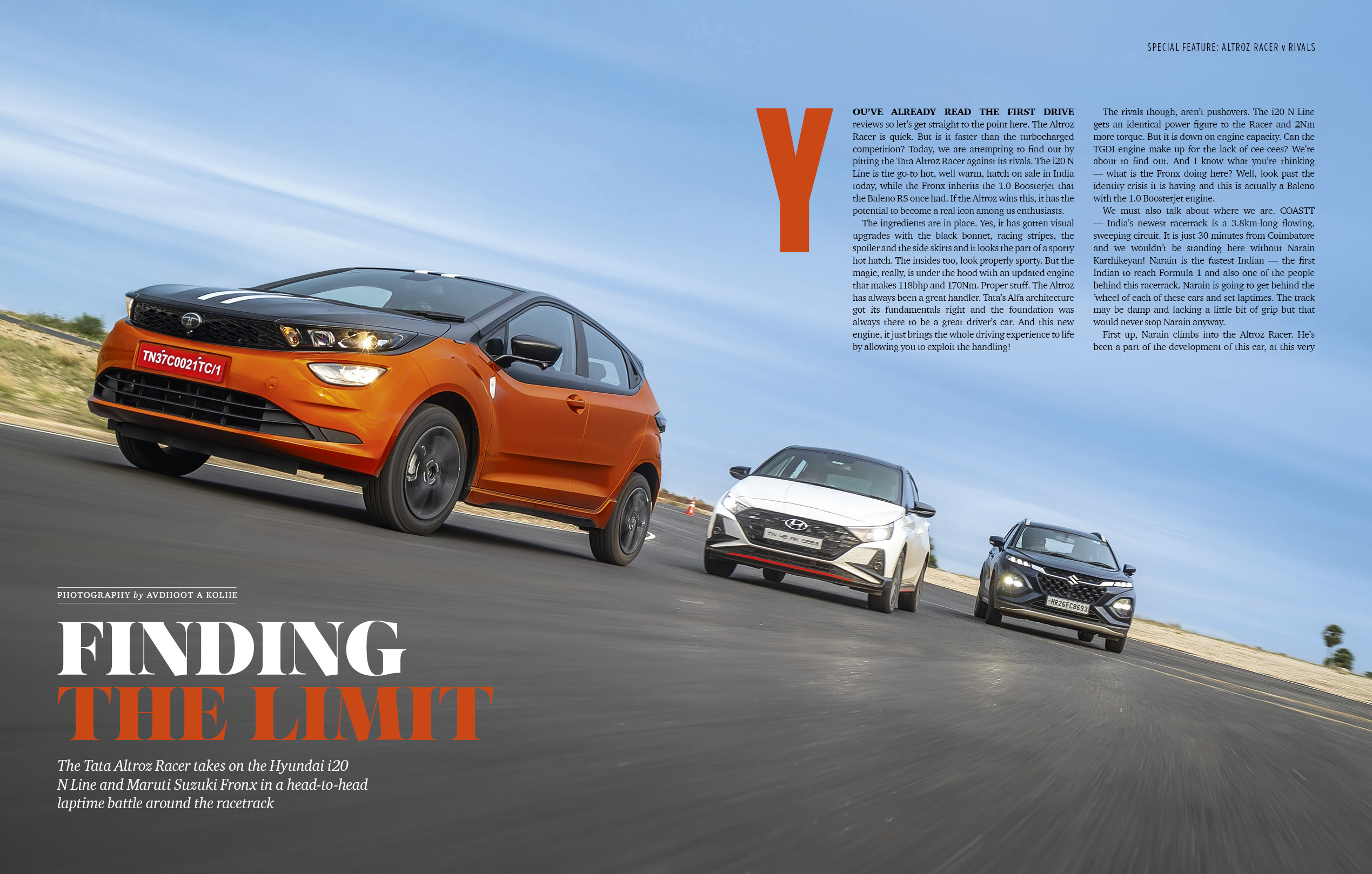 To find out how quick the new Tata Altroz Racer is we headed to the CoASTT race track and handed Narain Karthikeyan the keys. And to give us perspective we also brought along the Hyundai i20 N-Line and Maruti Suzuki Fronx Turbo to see which can set the fastest lap time