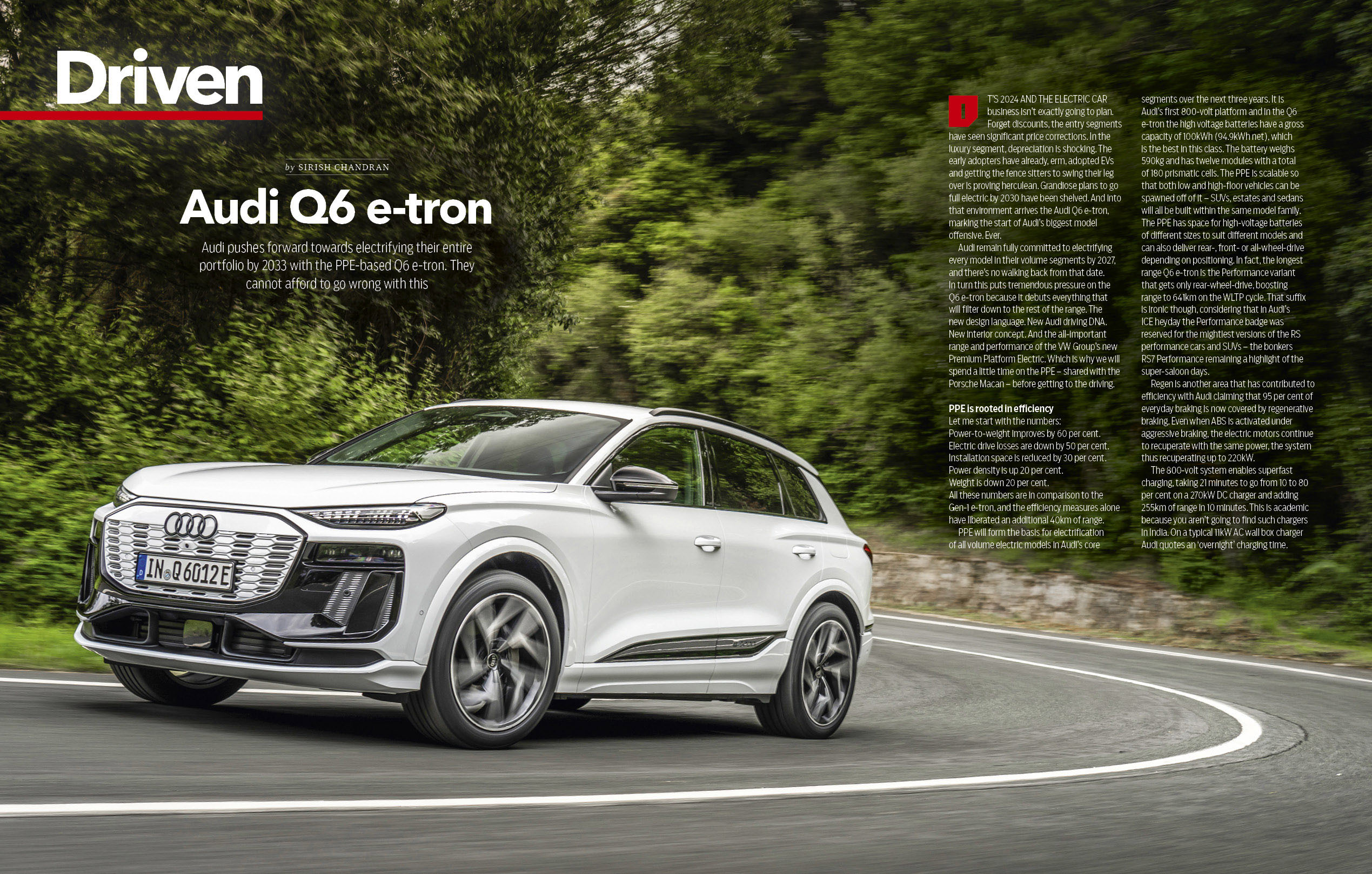 Based on the brand new PPE platform, co-developed with Porsche, the Q6 e-tron delivers more range, performance, space, tech and efficiency than Audi’s previous e-tron models. Due in India by the end of the year this sits in a sweet spot and could reinvigorate sales of luxury EVs says editor Sirish Chandran after testing it.