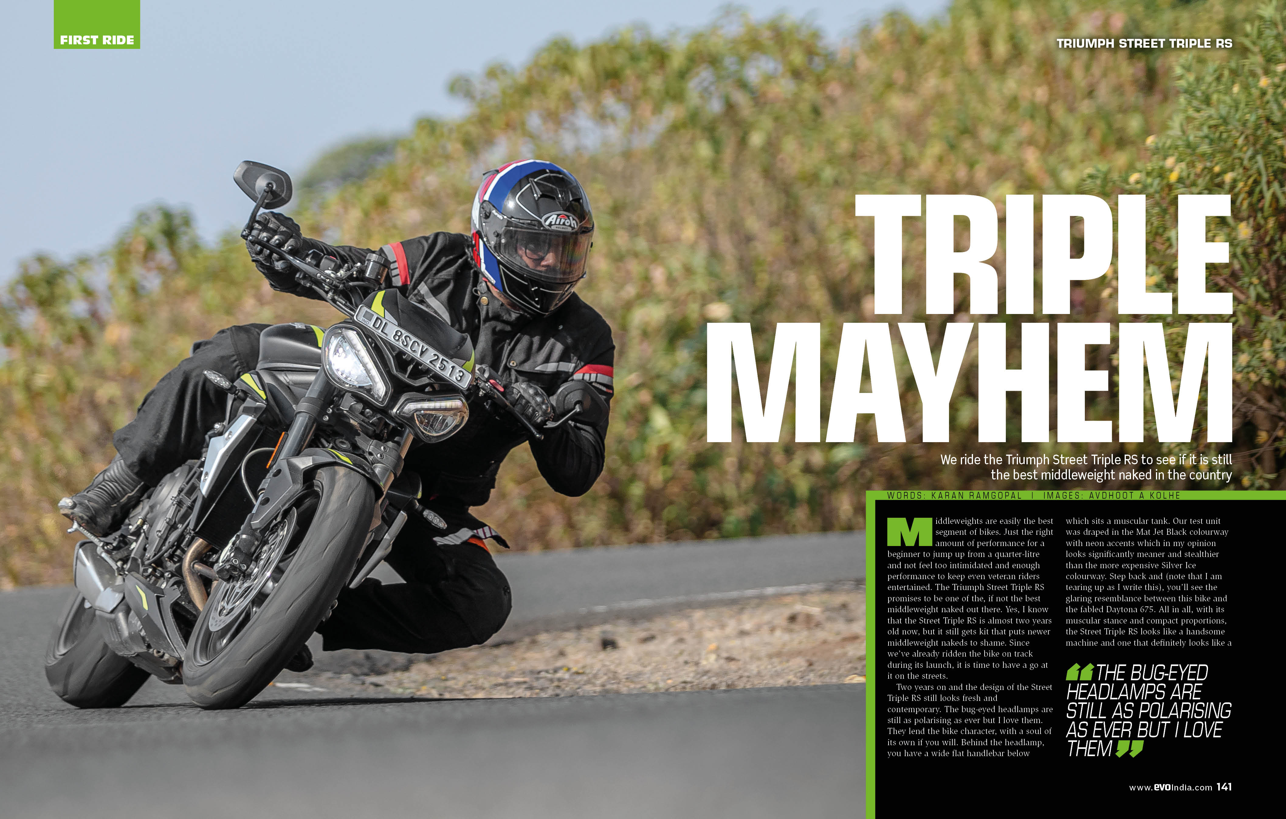 The Triumph Street Triple RS is amongst the best middleweight nakedBack when it launched, the Street Triple RS became the benchmark for middle weight nakeds. Having impressed us on the track, we bring it to the road to see if it is just as good. Are the uprated brakes, suspension and power worth the extra money for the streets, or should you stick to the R instead?
